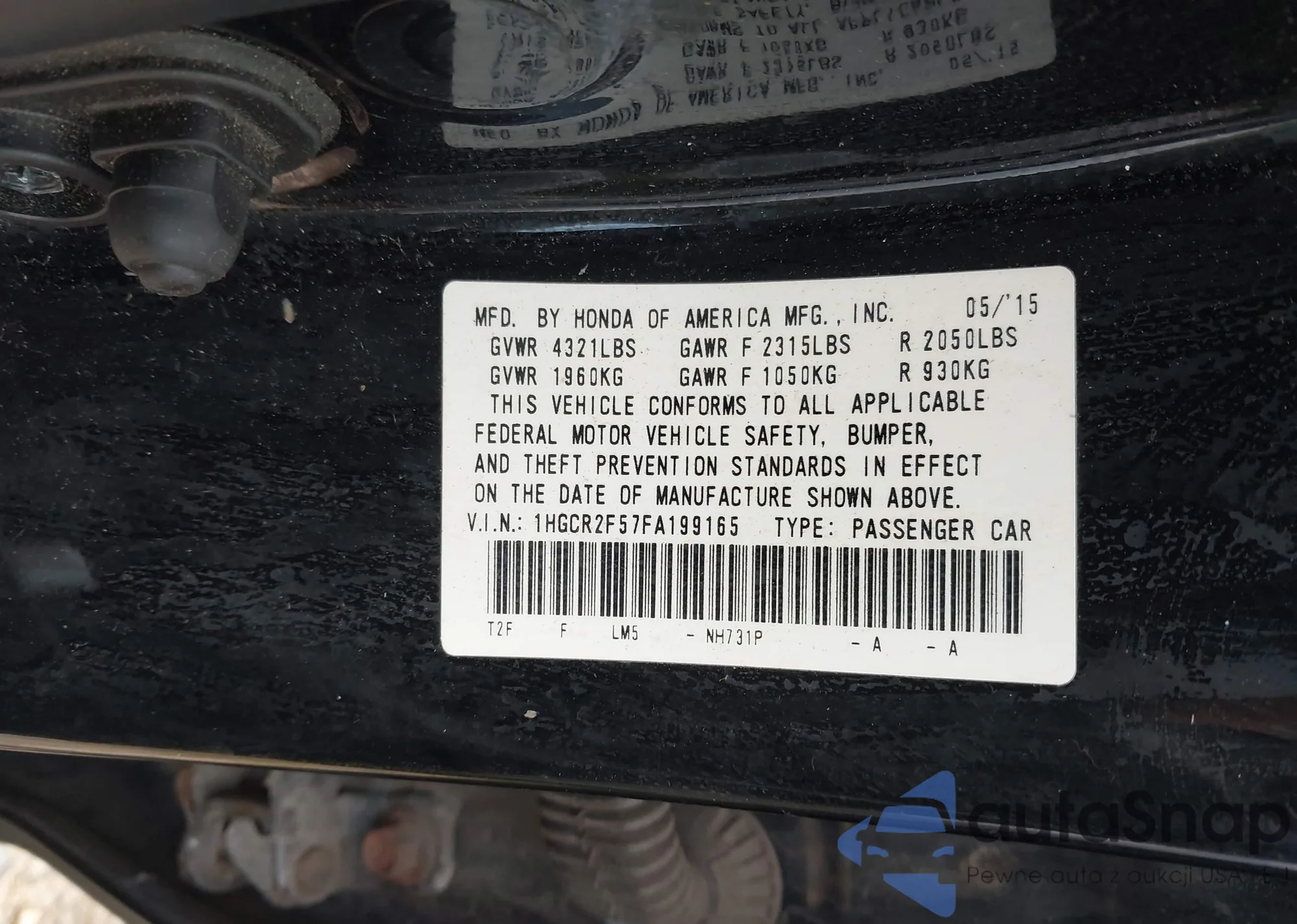 LOT: 42982974 VIN: 2HKRS6H50PH808558