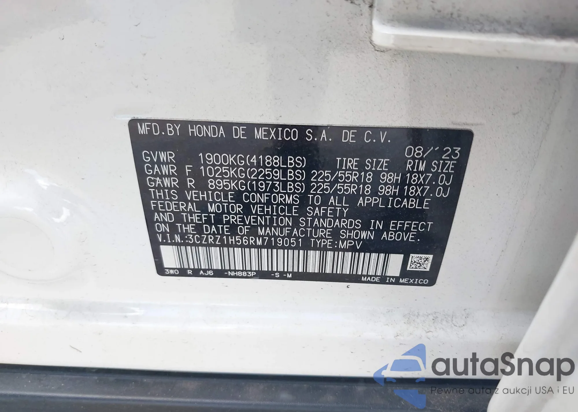 • VIN 3CZRZ1H56RM719051