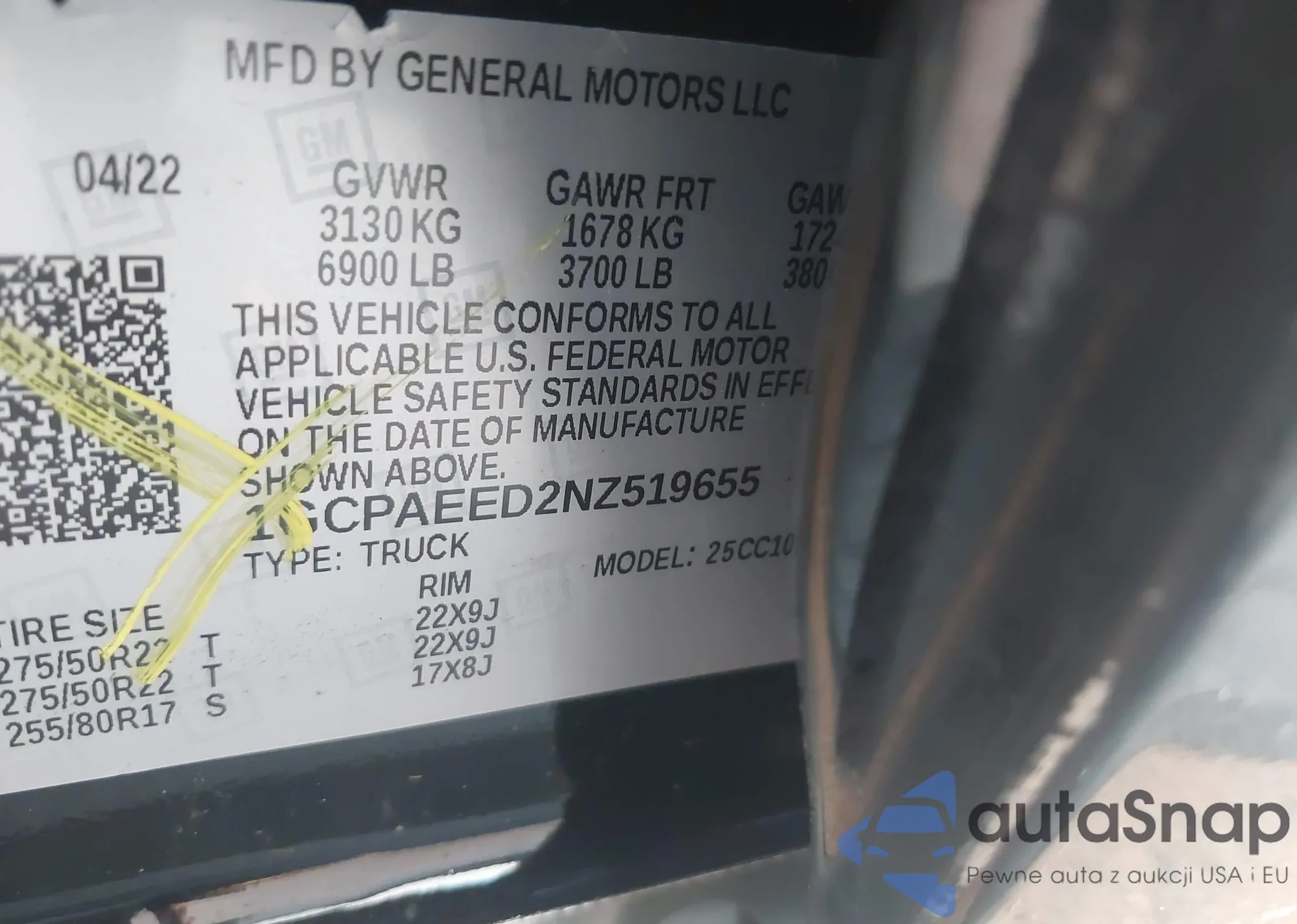 • VIN 1GCPAEED2NZ519655