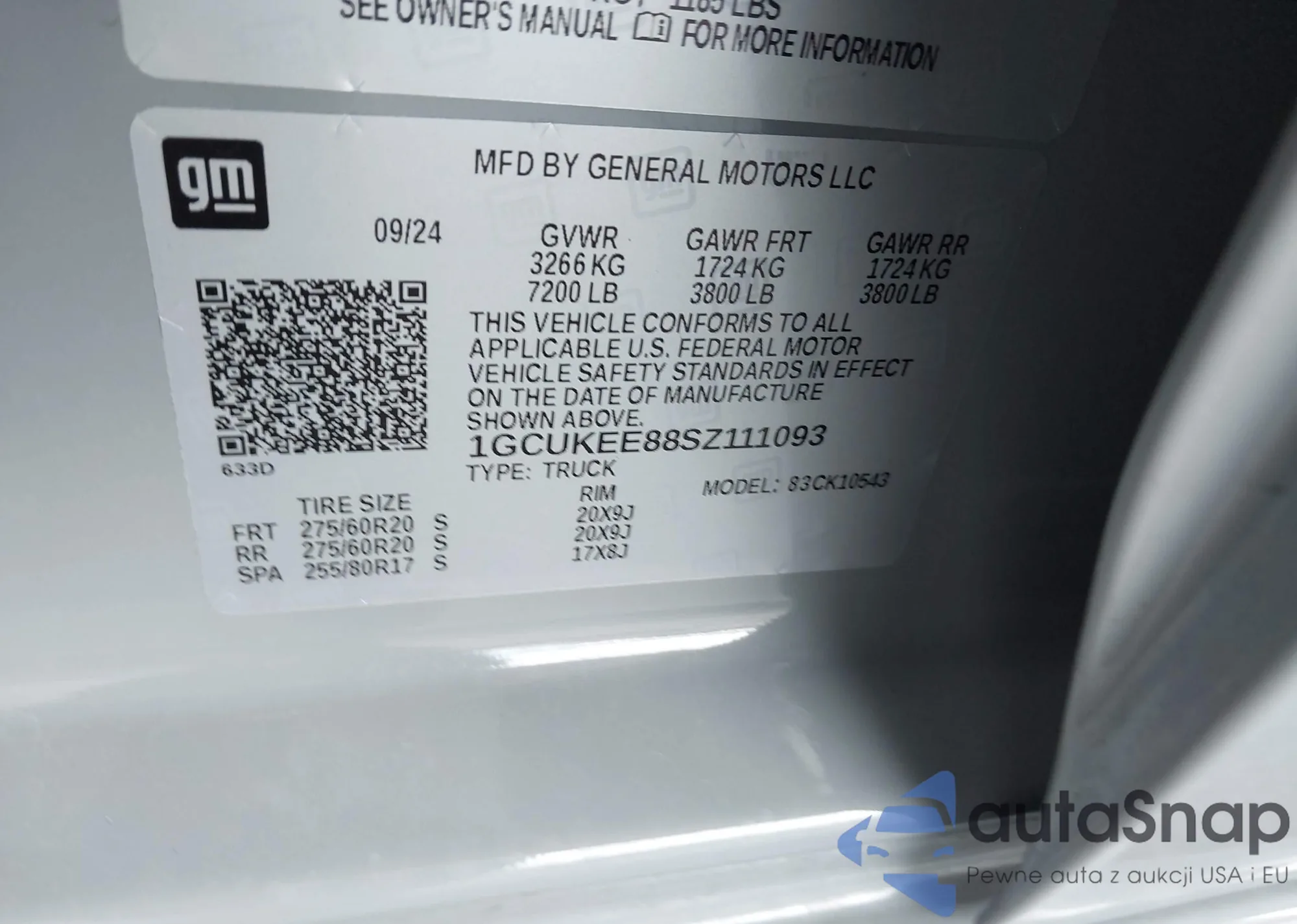 • VIN 1GCUKEE88SZ111093