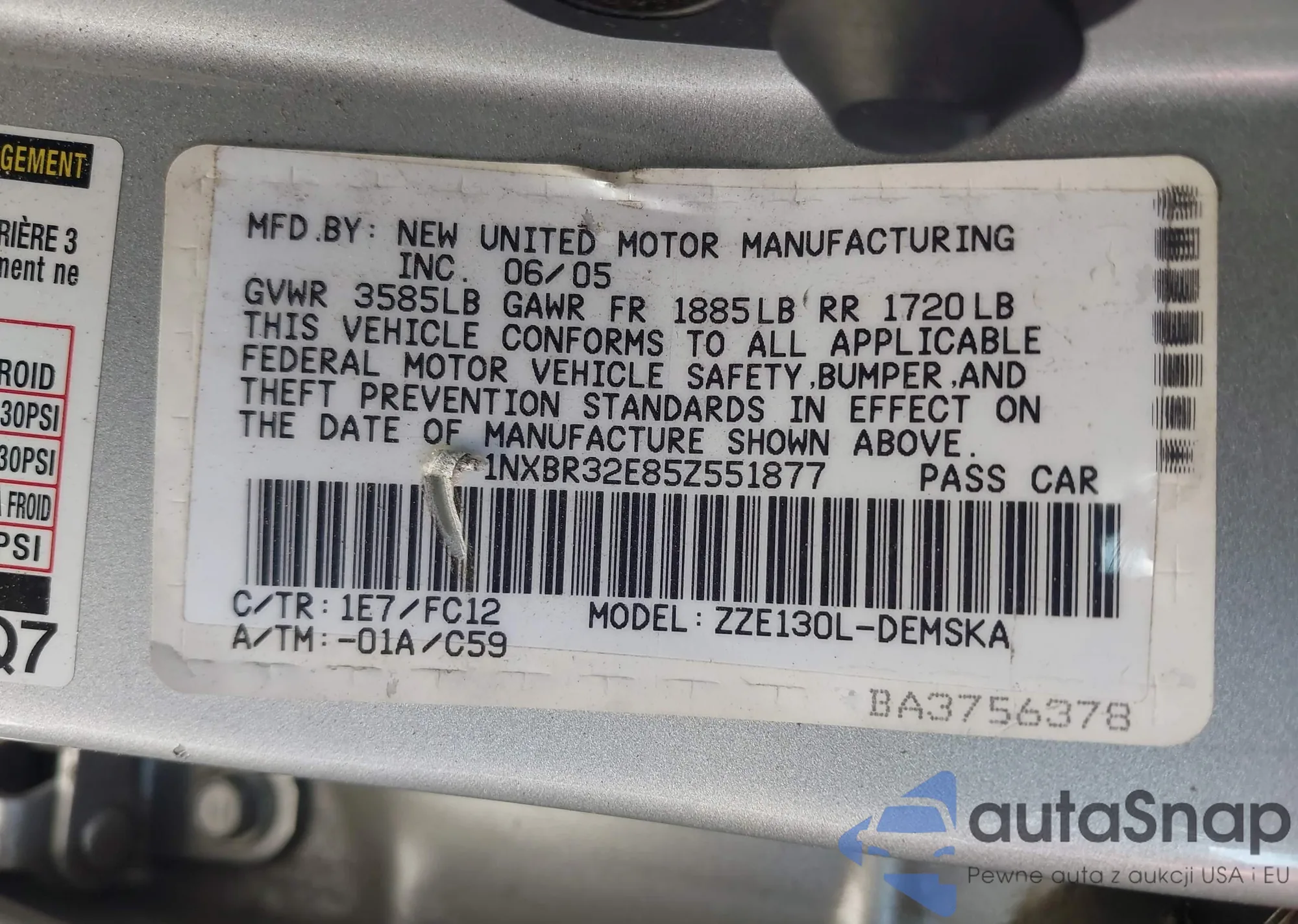 • VIN 1NXBR32E85Z551877