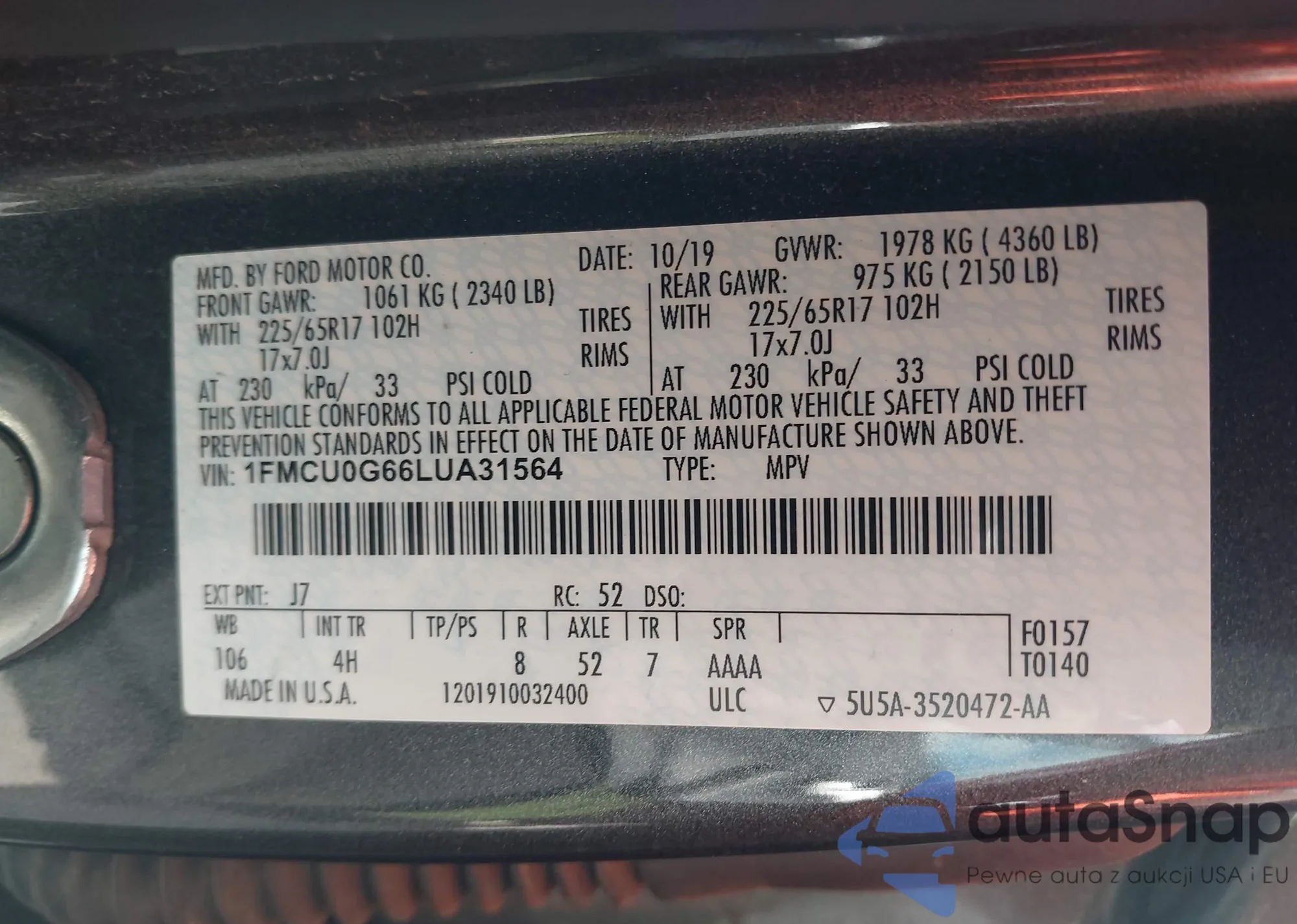 LOT: 42926832 VIN: 1FMCU9GN1SUA78513