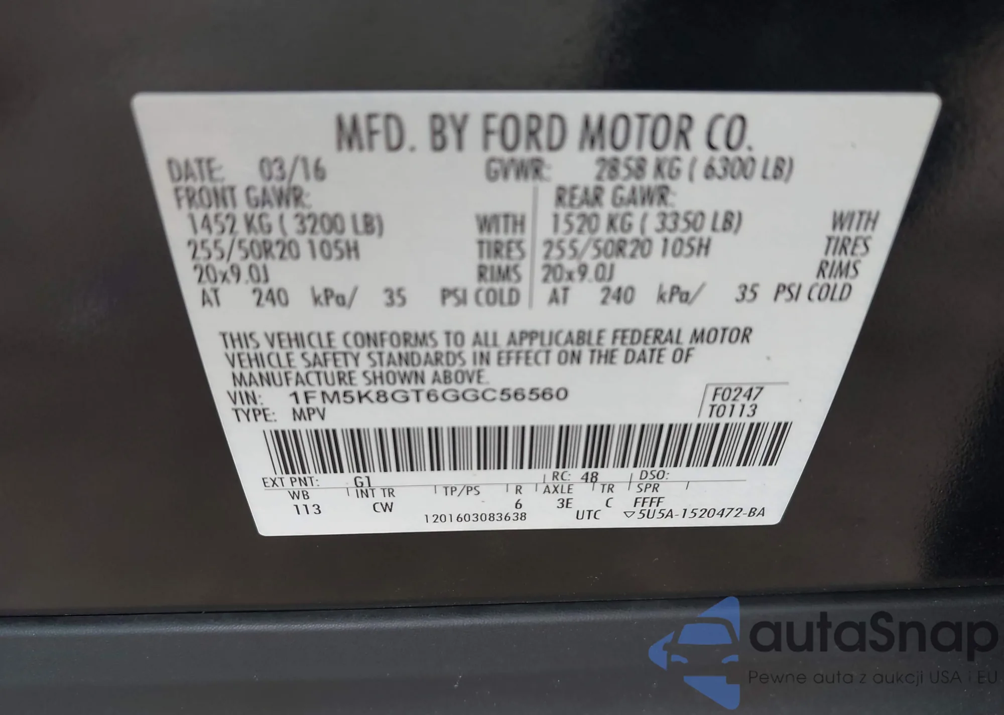• VIN 1FM5K8GT6GGC56560