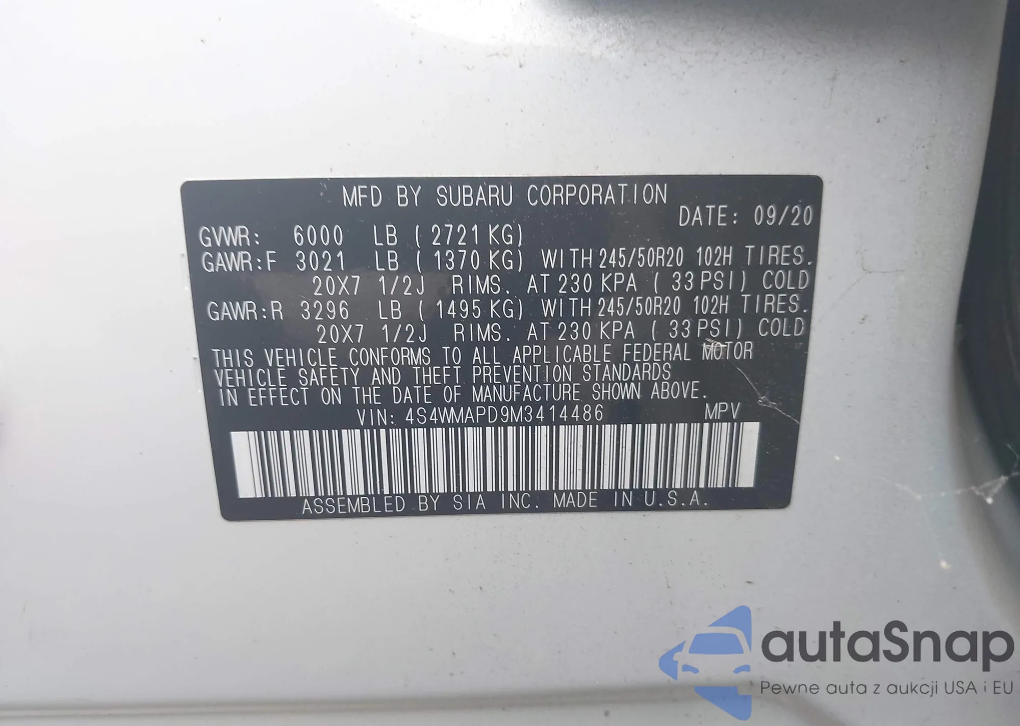 • VIN 4S4WMAPD9M3414486