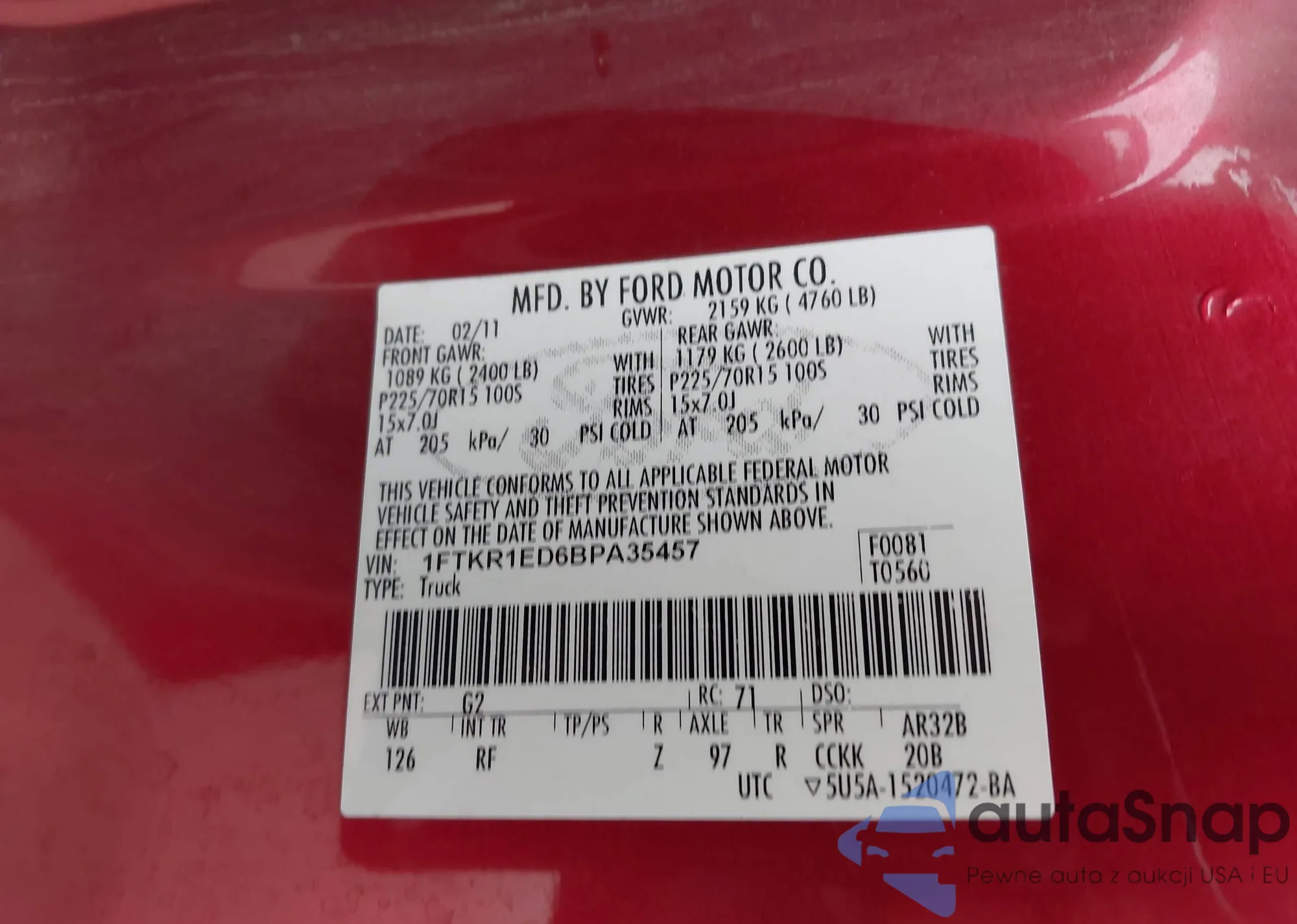 • VIN 1FTKR1ED6BPA35457