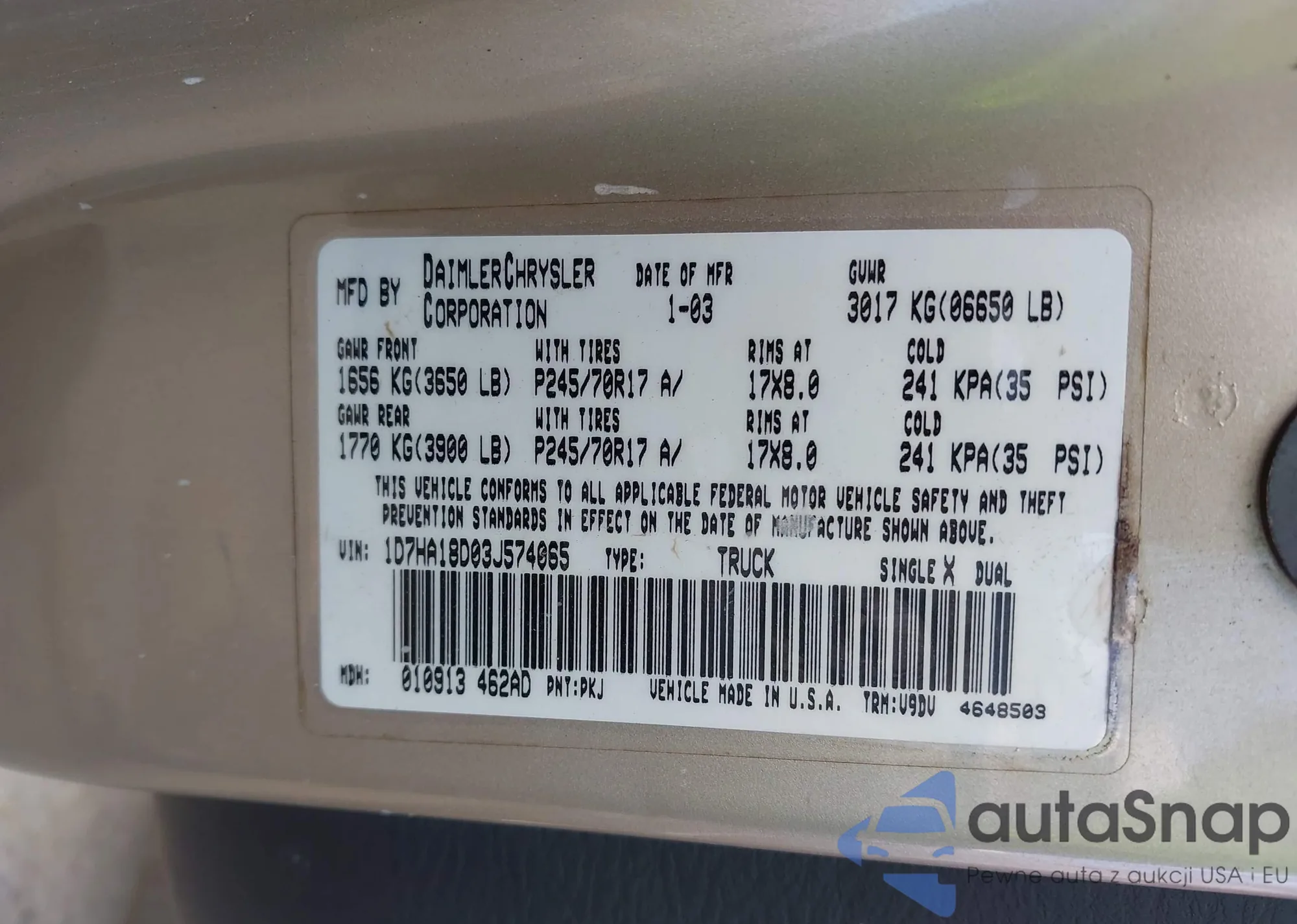 • VIN 1D7HA18D03J574065