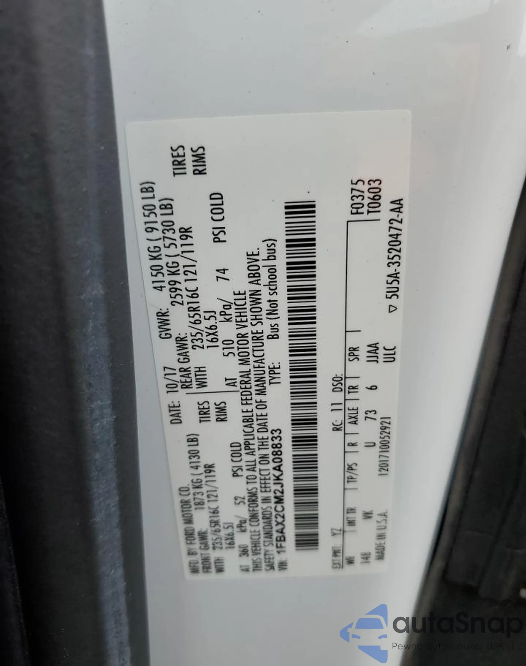 LOT: 68085785 VIN: 1FMSK8DH1MGA29114