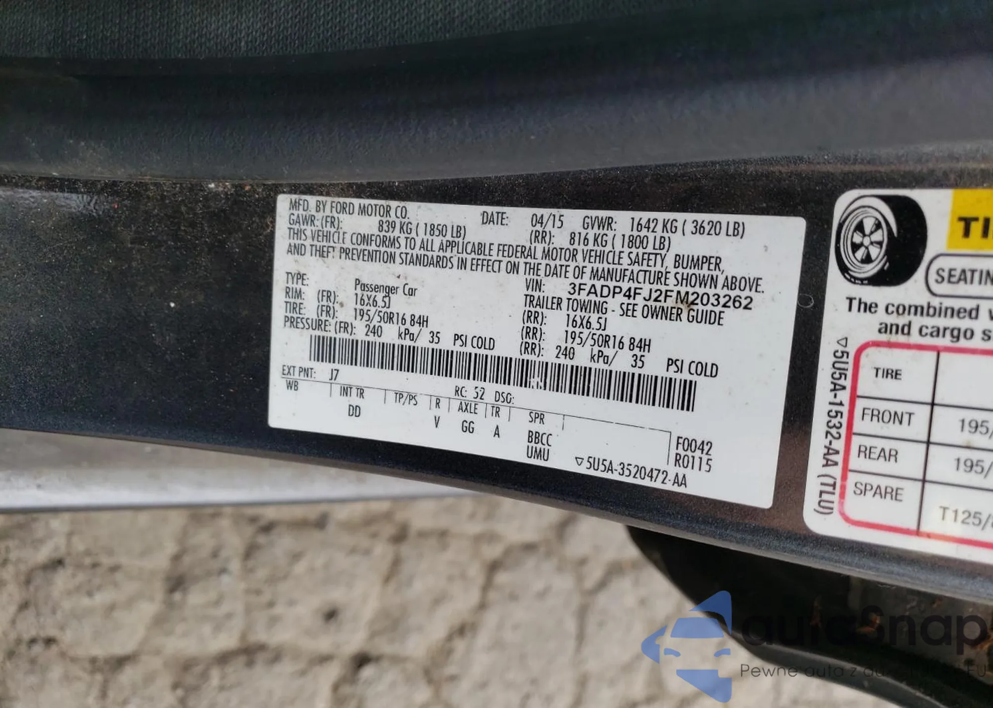 LOT: 80033425 VIN: 3FADP4FJ2FM203262