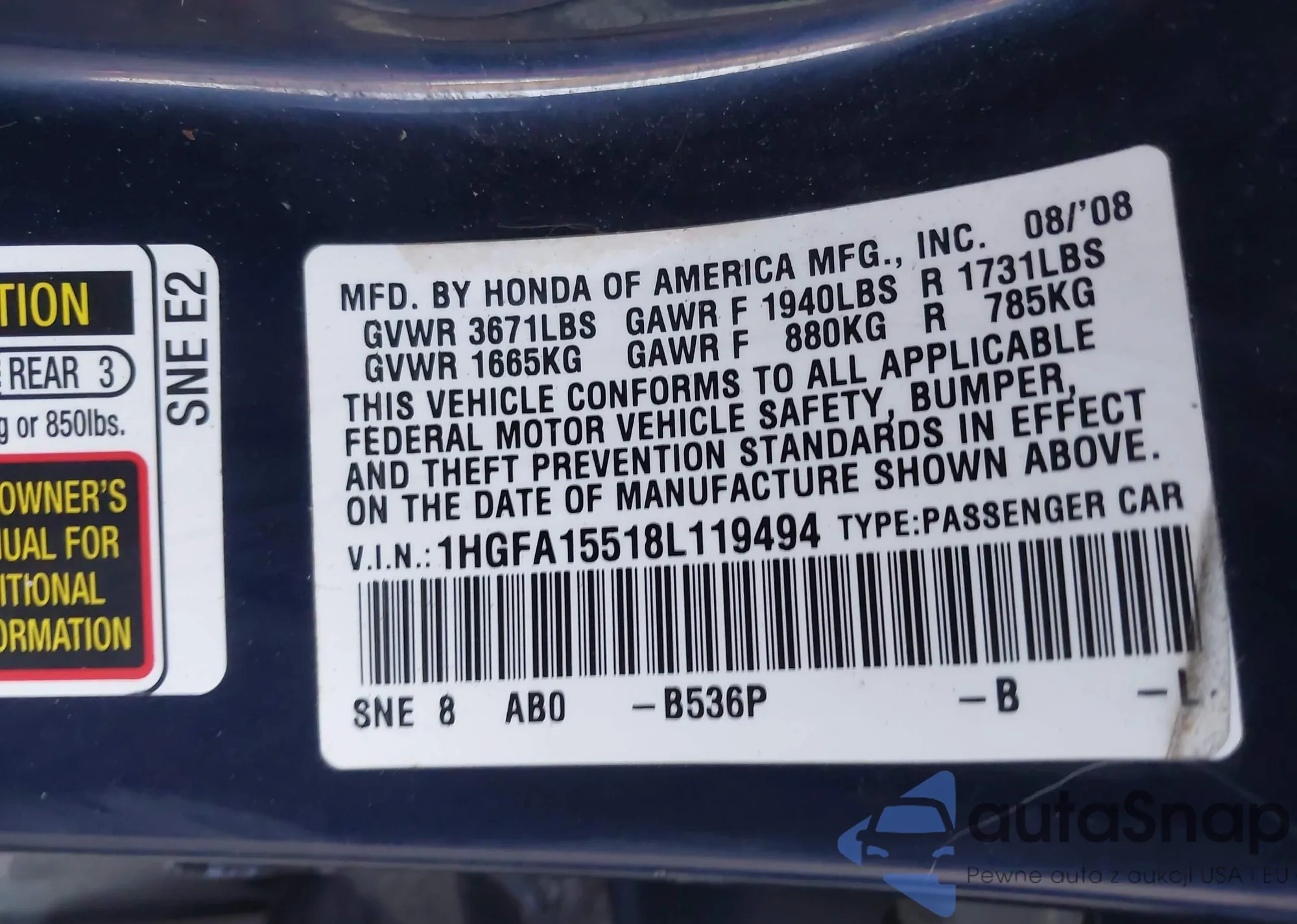 • VIN 4T1BB46K18U047461