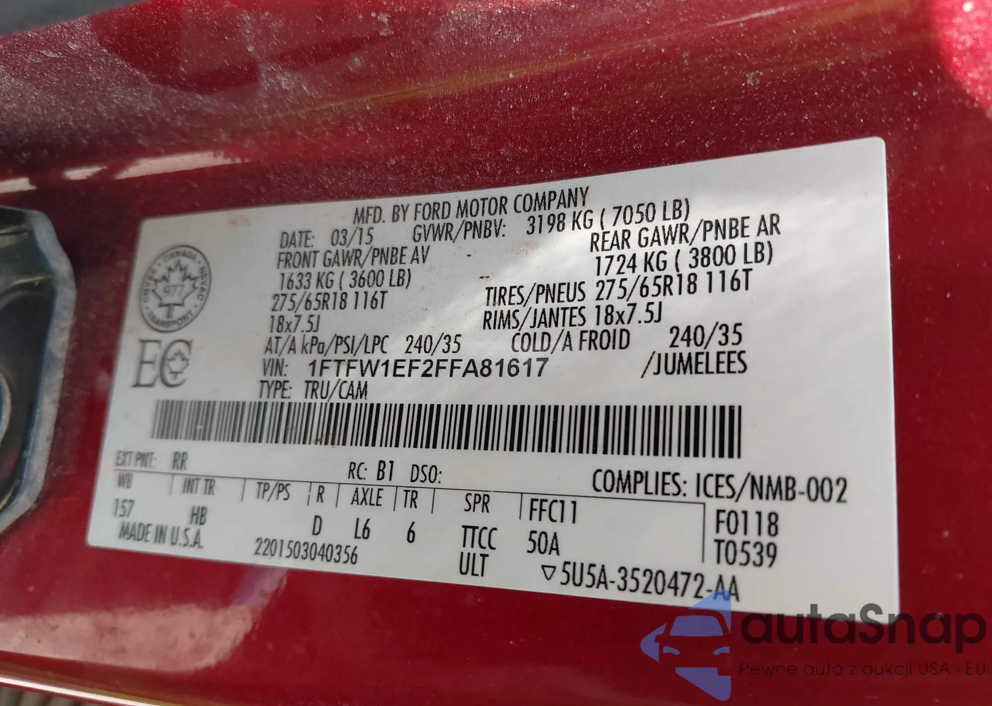 LOT: 42915730 VIN: 1FTFW1EF2FFA81617