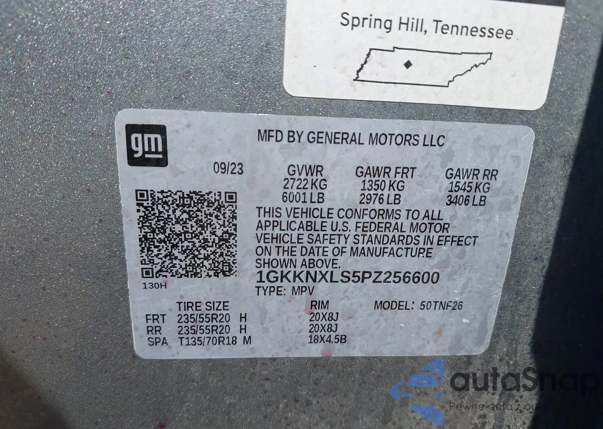 LOT: 42924905 VIN: 1GKKNXLS5PZ256600