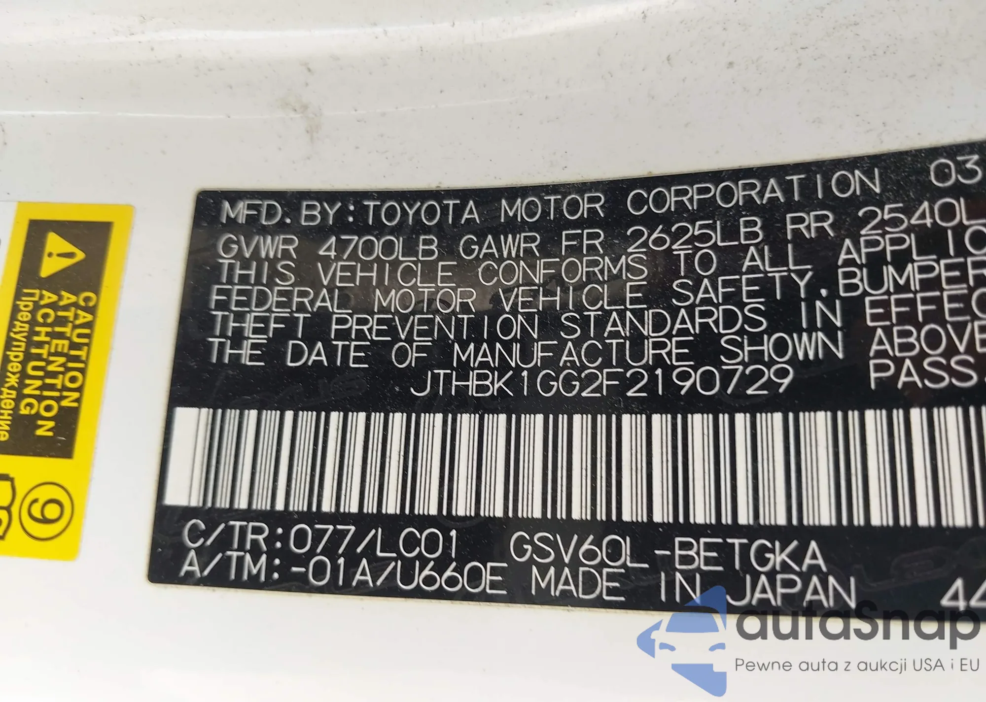 LOT: 43148583 VIN: 1G1ZE5SX9KF149080