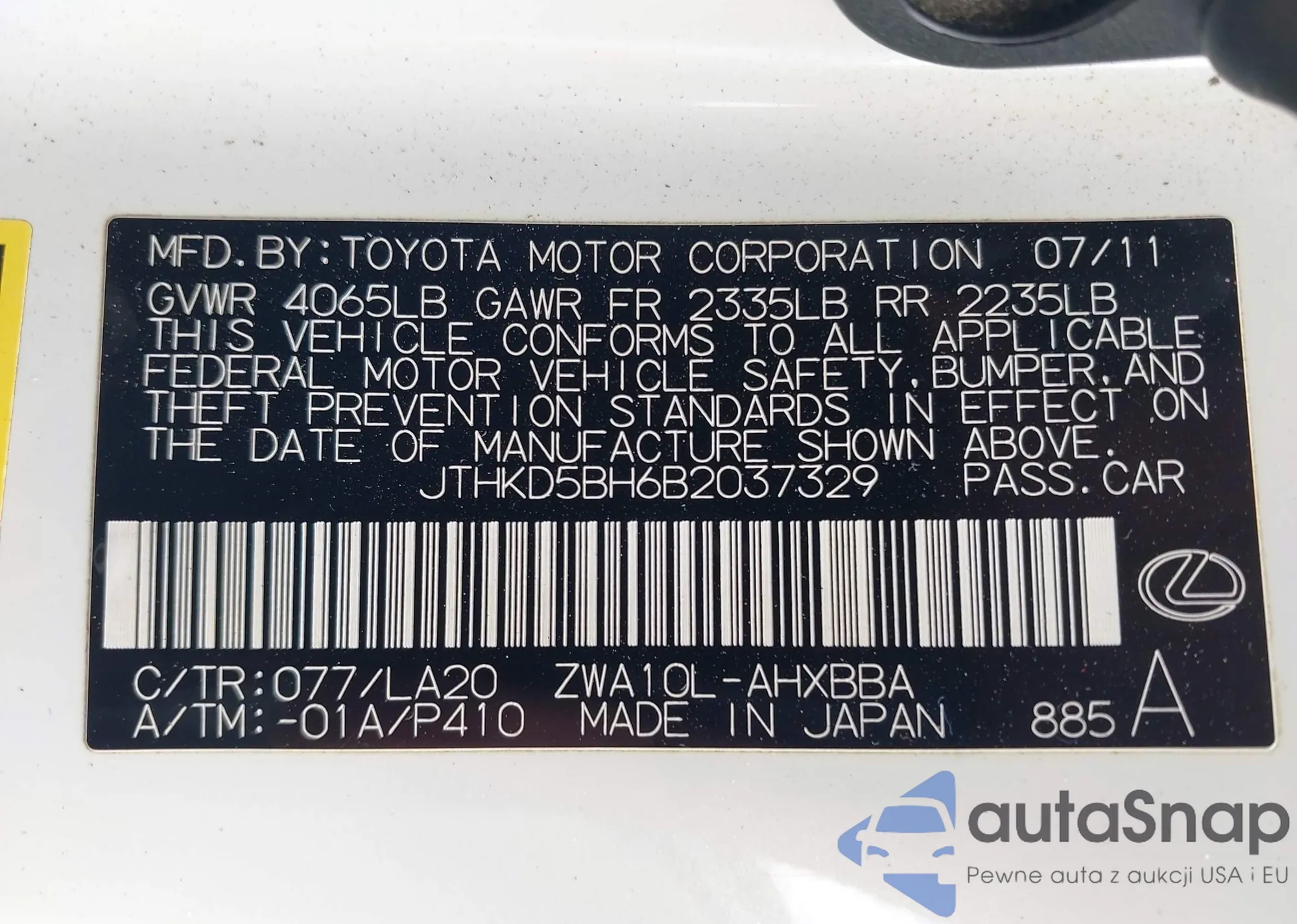 LOT: 42435707 VIN: 2T3DK4DV2CW081866