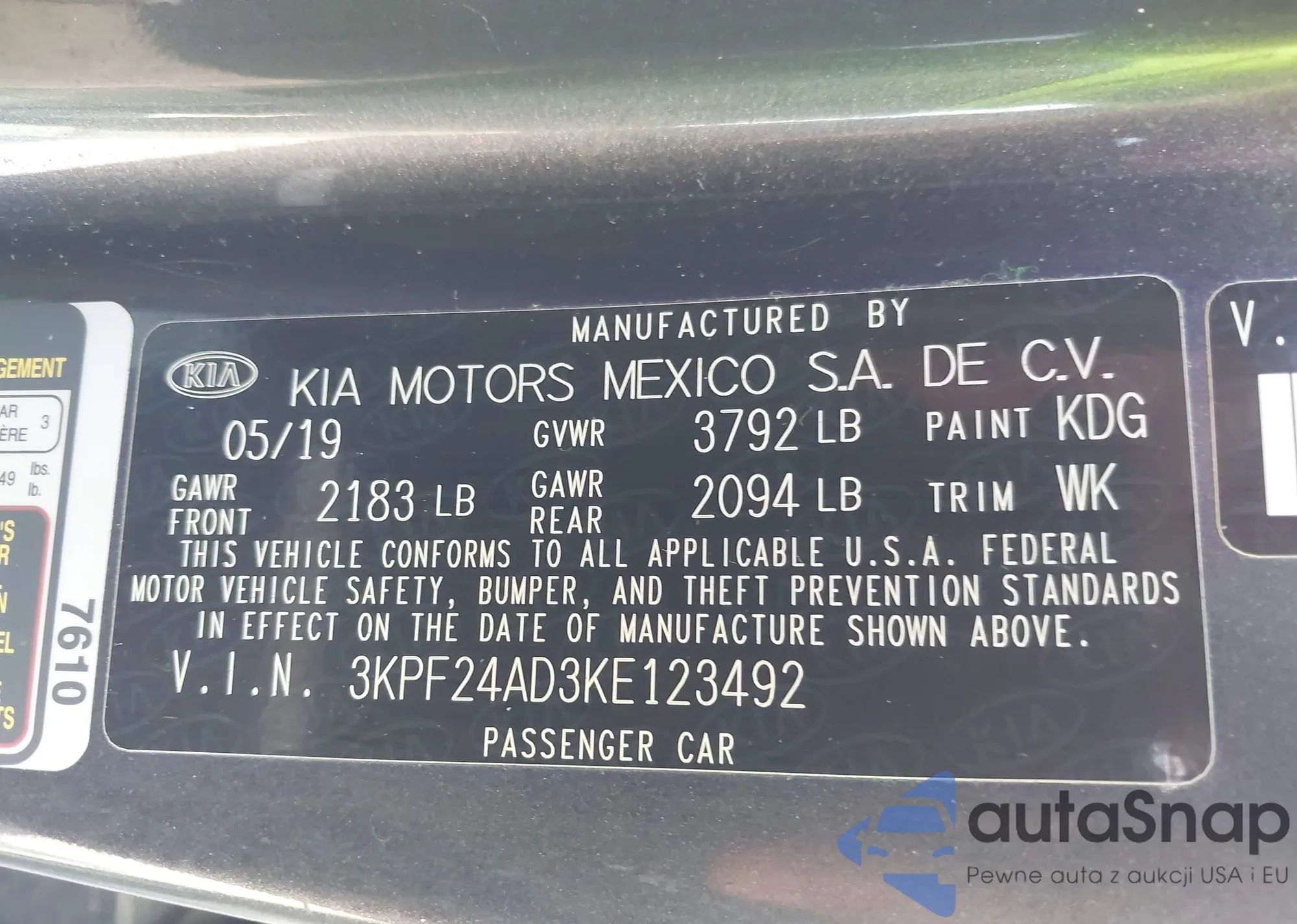 • VIN 3KPF24AD3KE123492