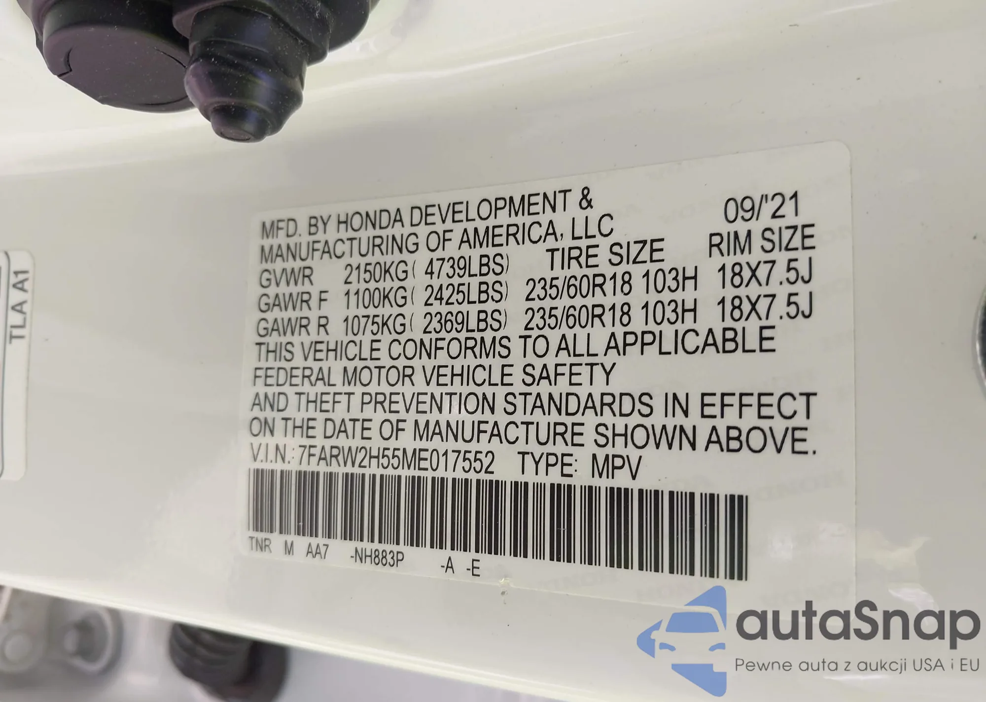 • VIN 7FARW2H55ME017552
