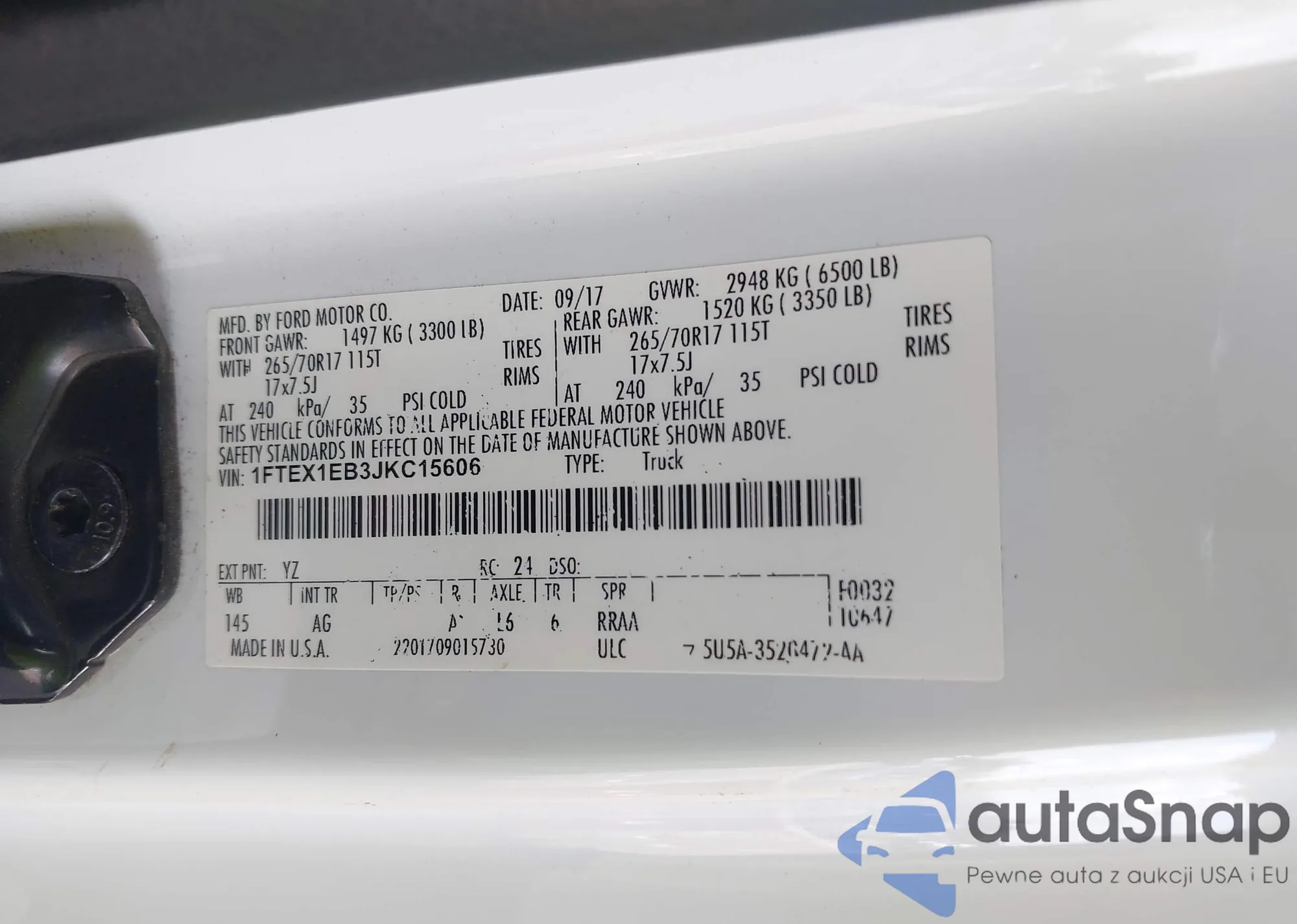 LOT: 43341359 VIN: 1FTPW04578KC74346