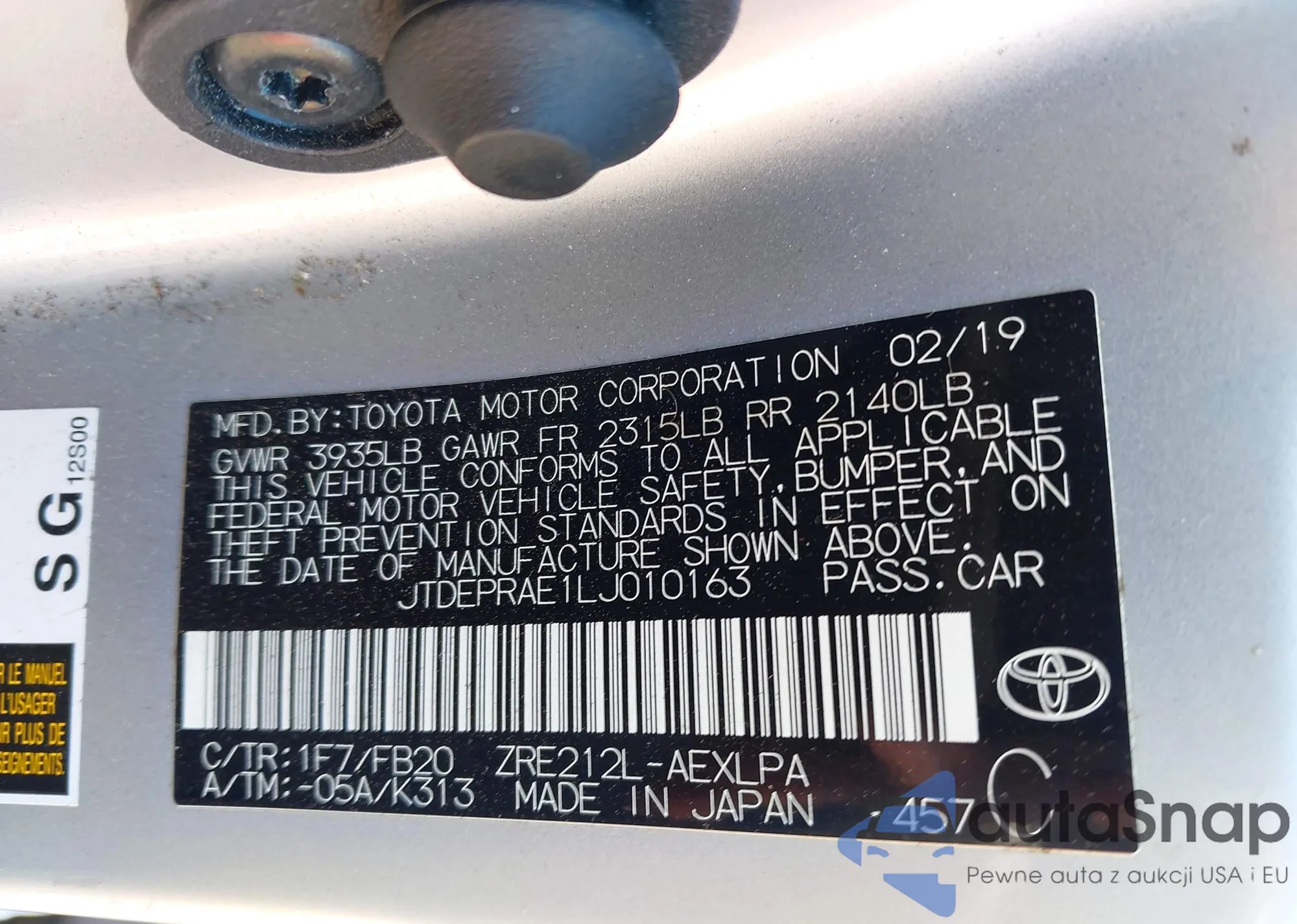 LOT: 43189579 VIN: JTDJT923785183757