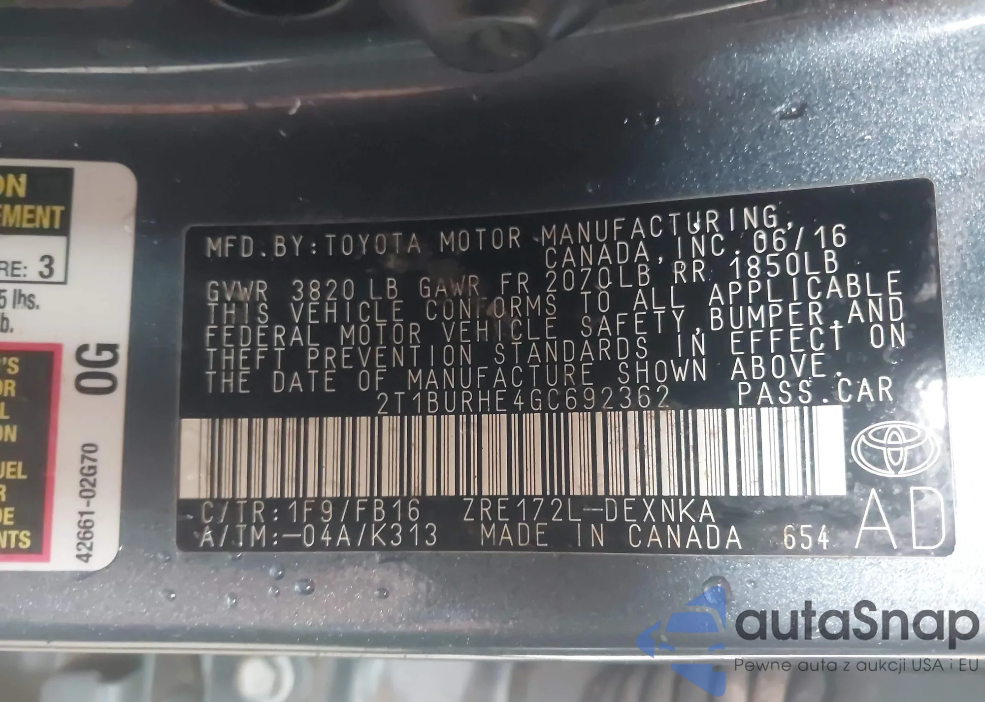 • VIN 2T1BURHE4GC692362