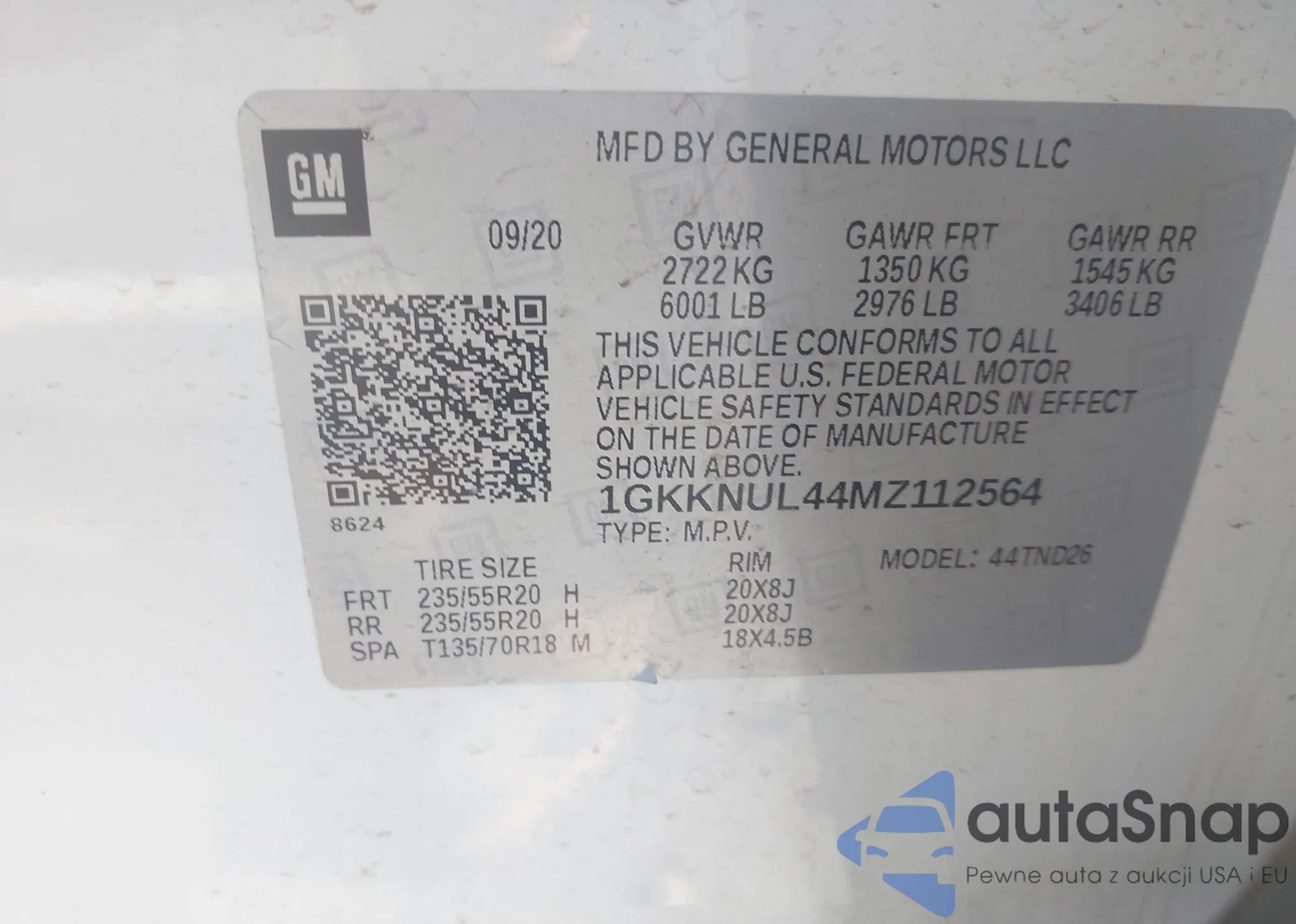 LOT: 43113157 VIN: 1GKKNUL44MZ112564
