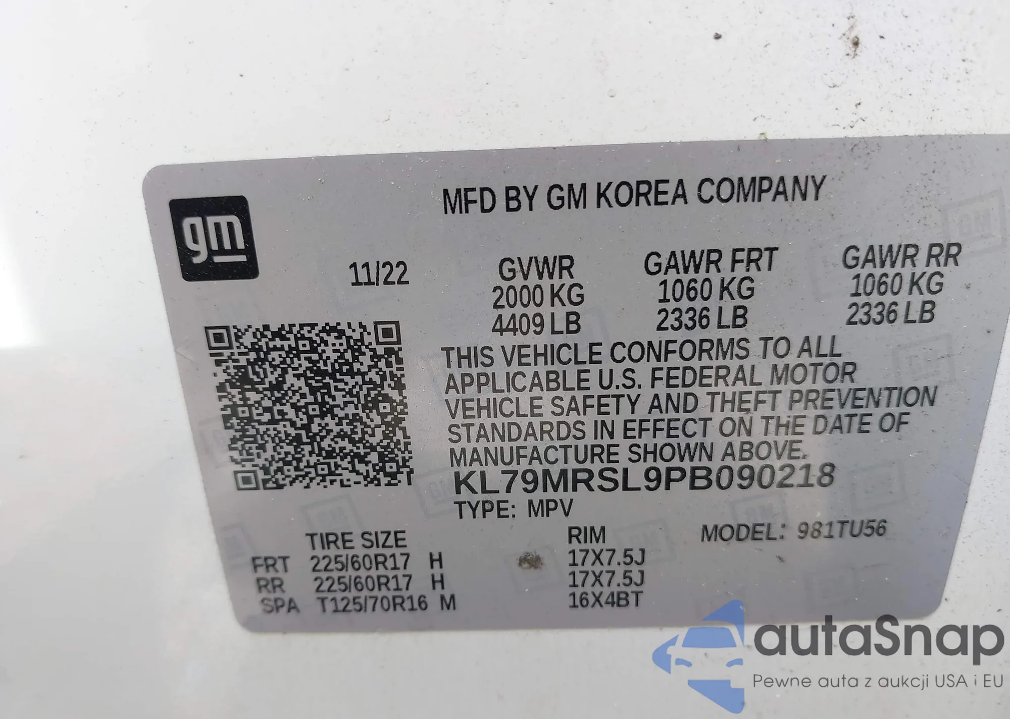 LOT: 42770121 VIN: 3TMBZ5DN3NM036772