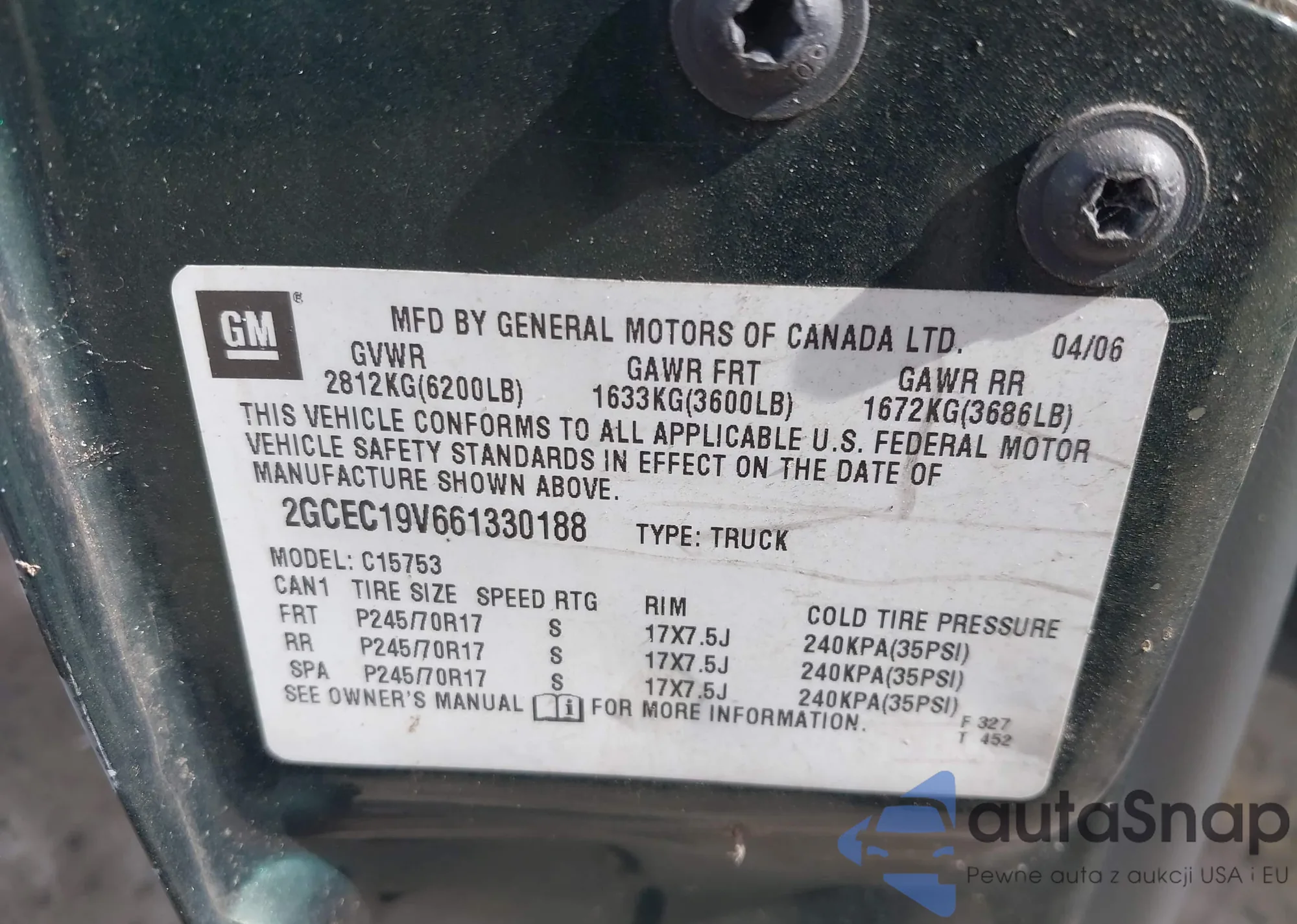 • VIN 2GCEC19V661330188