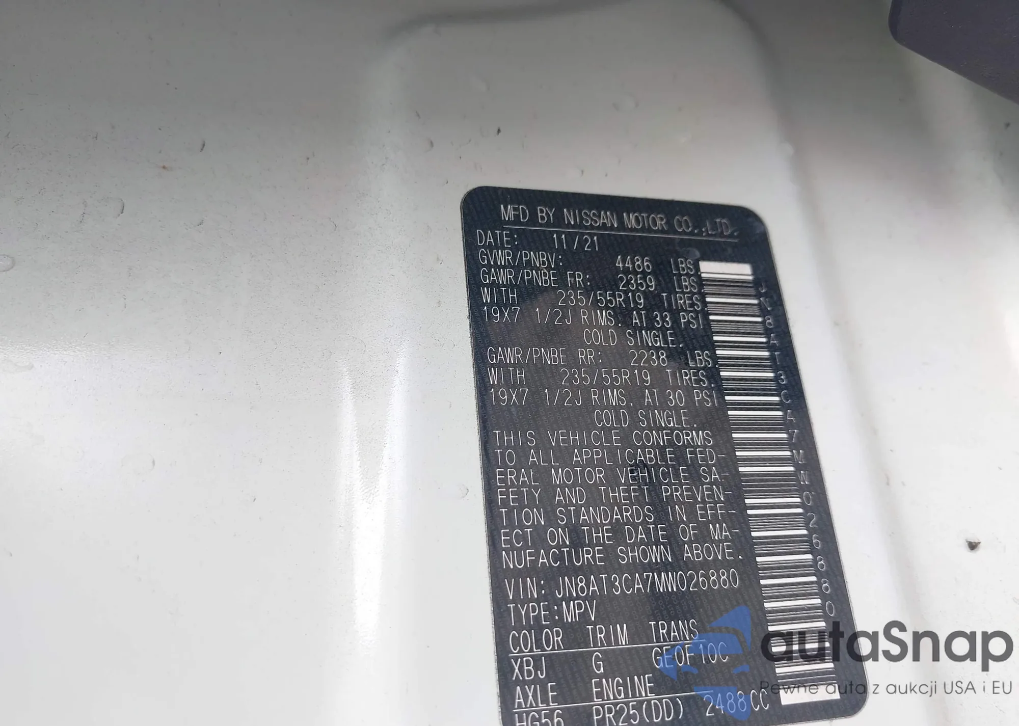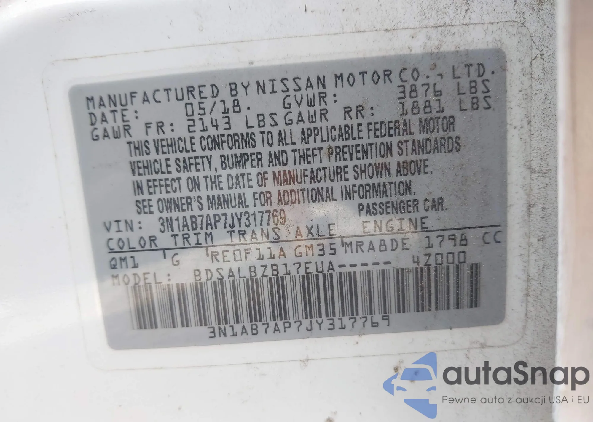 LOT: 42687335 VIN: 3N1AB7AP7JY317769