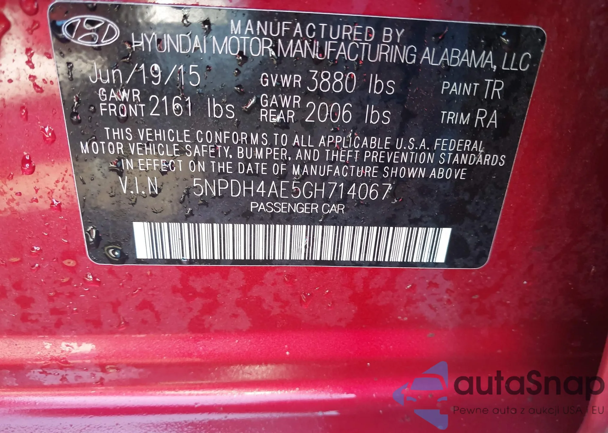 LOT: 42926815 VIN: 5NPDH4AE5GH714067