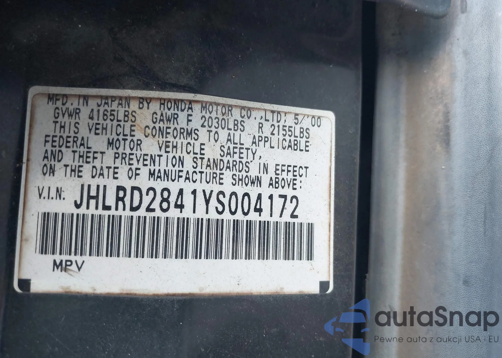• VIN JHLRD2841YS004172
