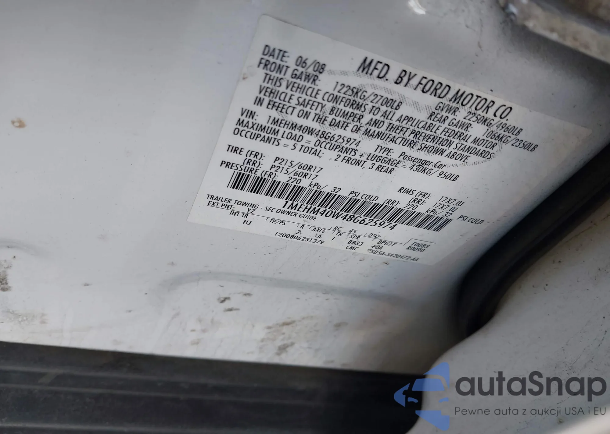 LOT: 41946535 VIN: 1MEHM40W48G625974