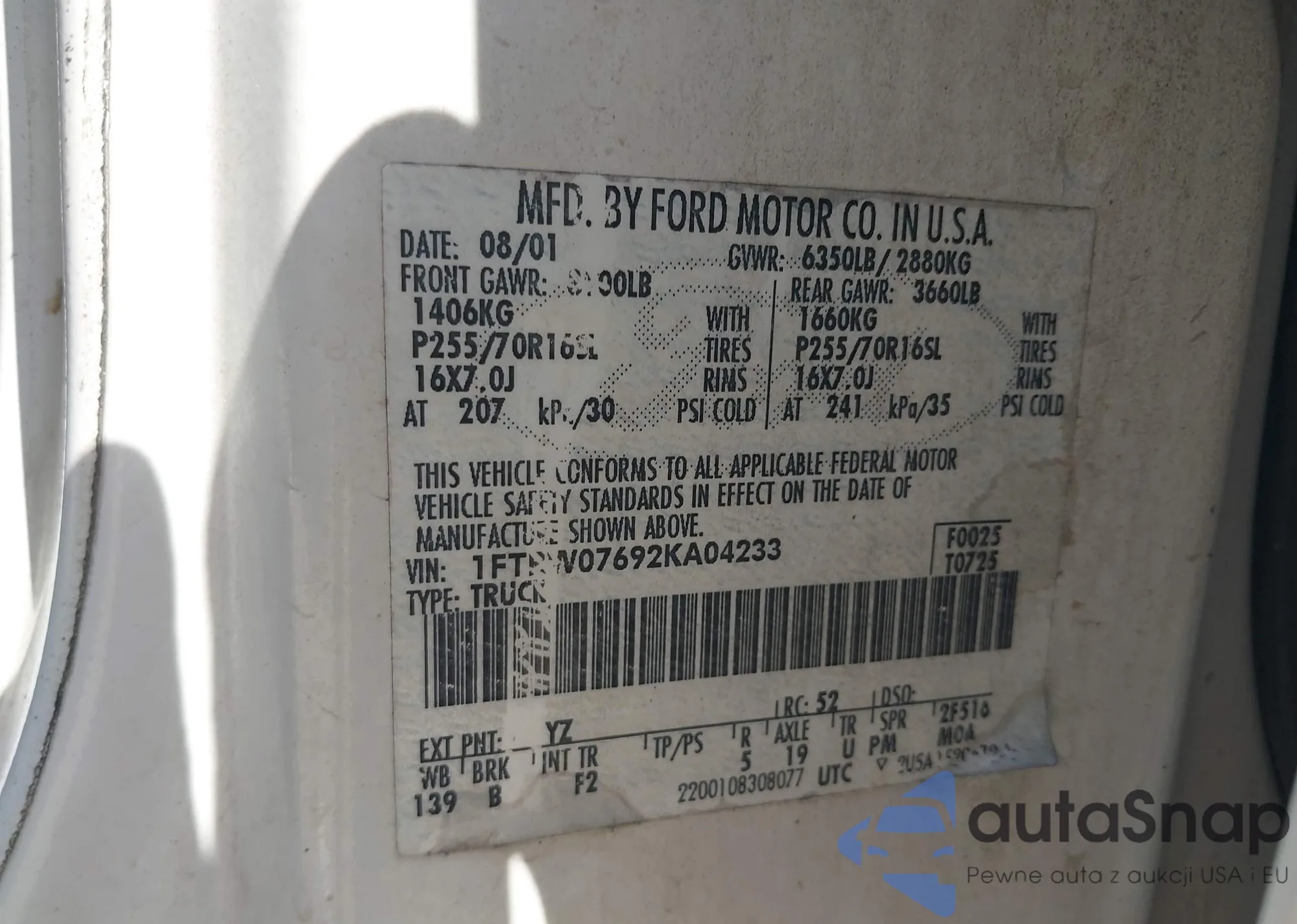 • VIN 1FTRW07692KA04233