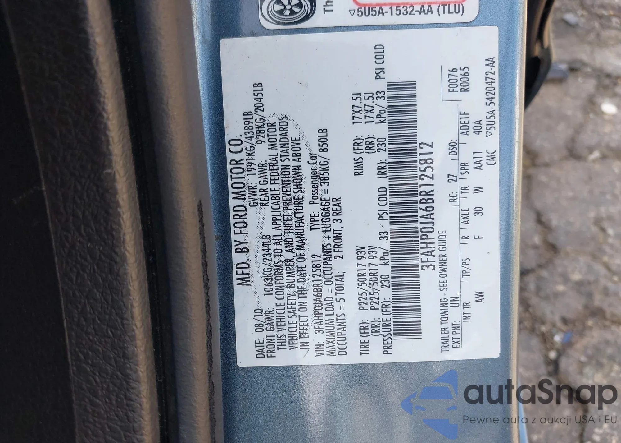 • VIN 3FAHP0JA6BR125812