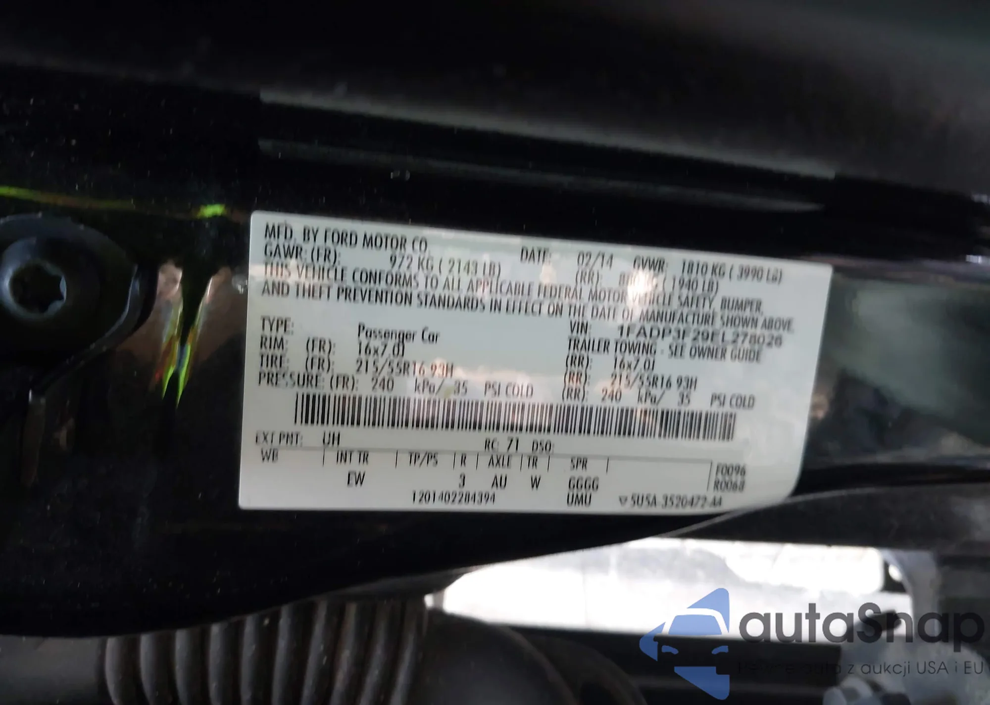 LOT: 43203430 VIN: 1FADP3F29EL278026