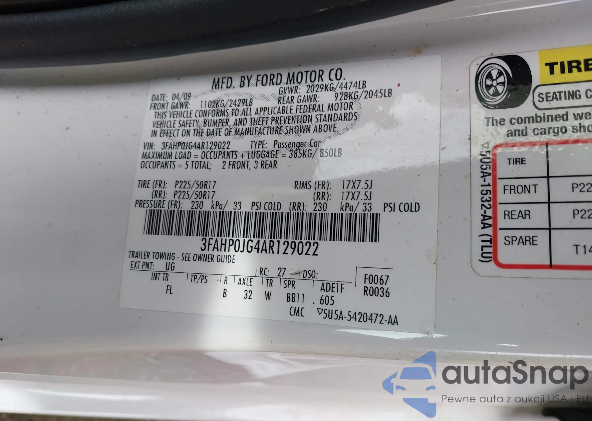 • VIN 3FAHP0HGXAR198108