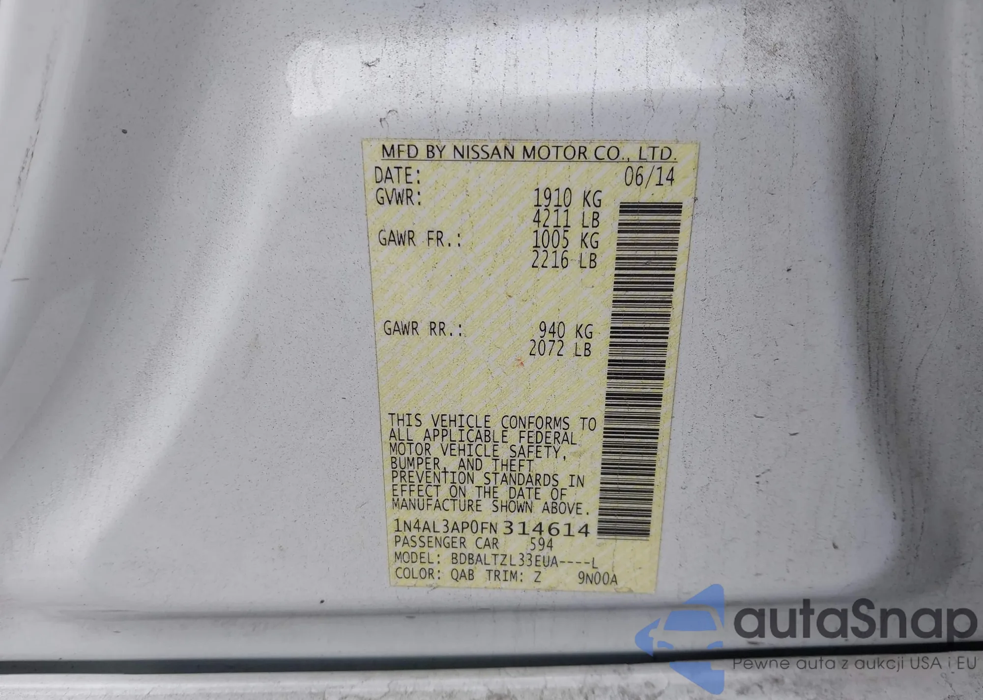 LOT: 43197785 VIN: 1N4AL3AP0FN314614