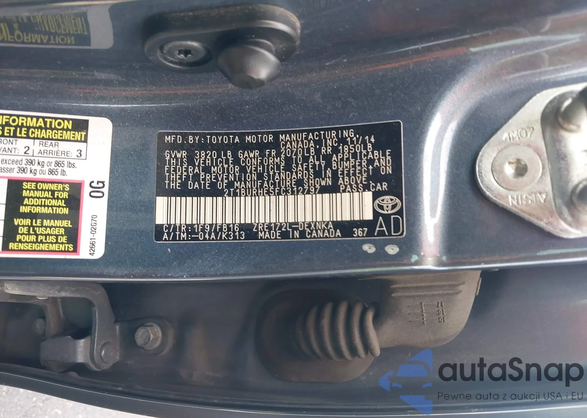 LOT: 43258141 VIN: 2T1BURHE5FC312797