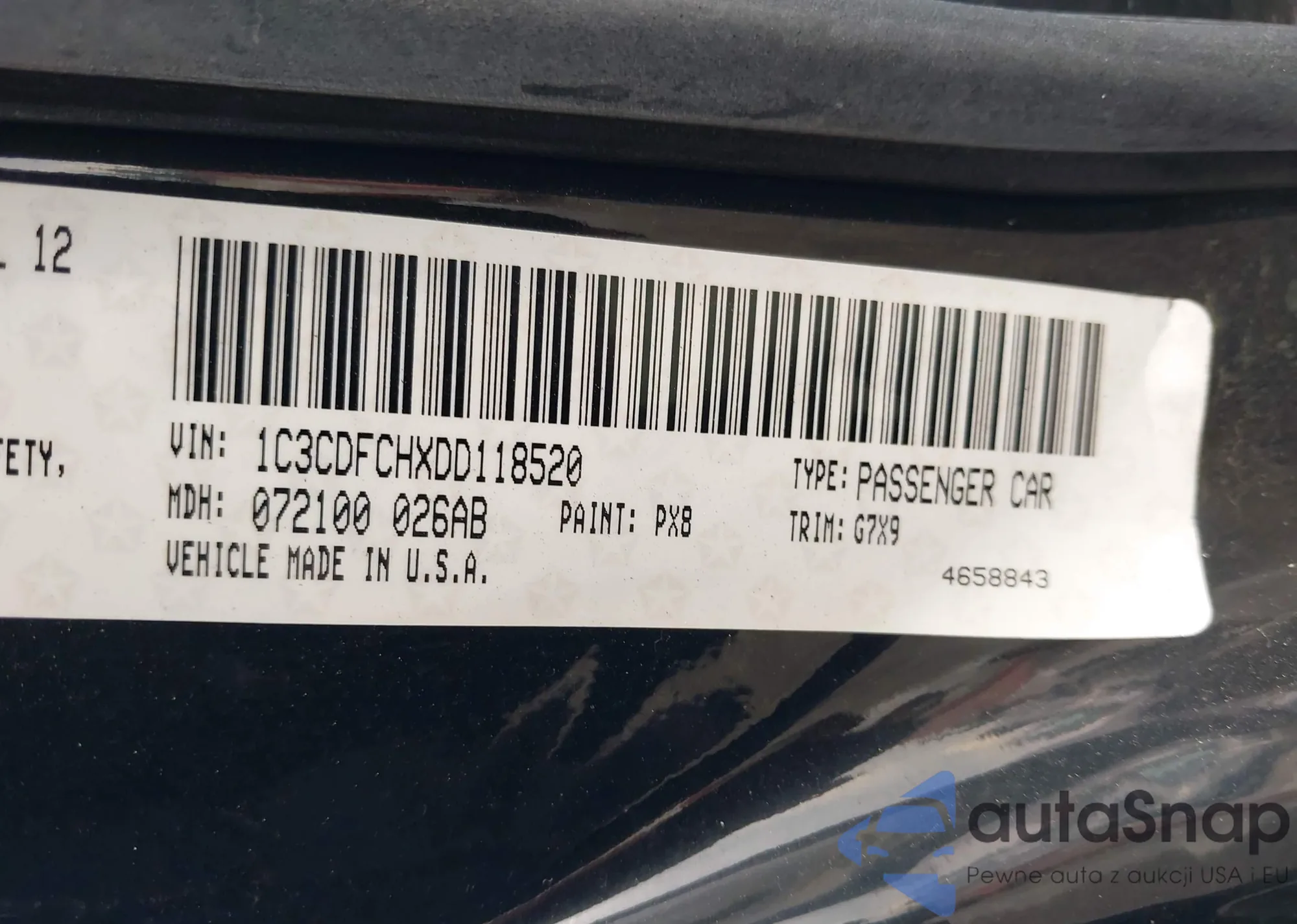 LOT: 43299041 VIN: 1C3CDFCHXDD118520
