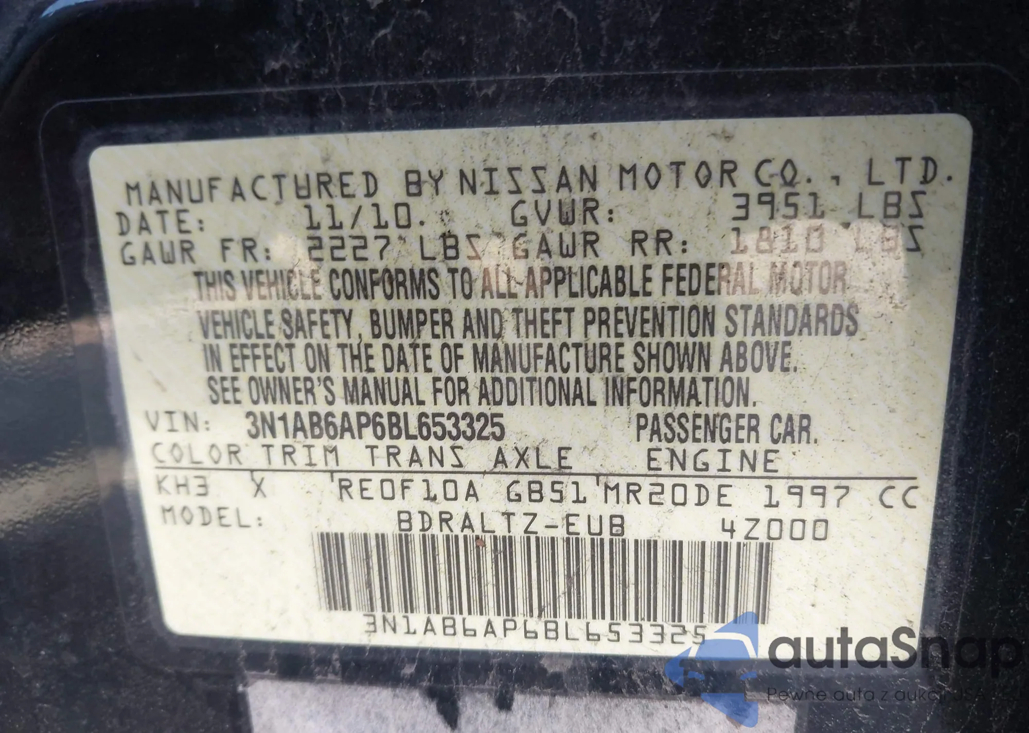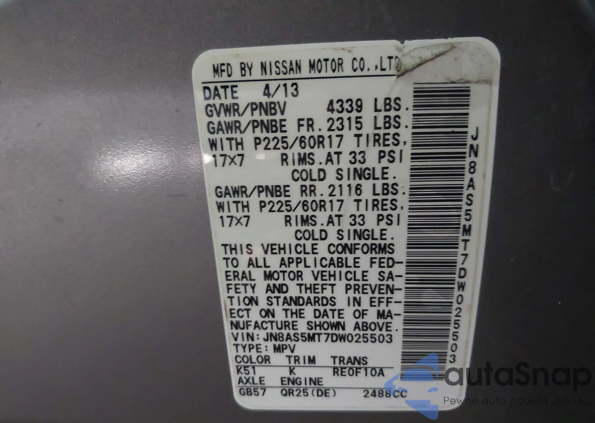 • VIN JN8AS5MT7DW025503