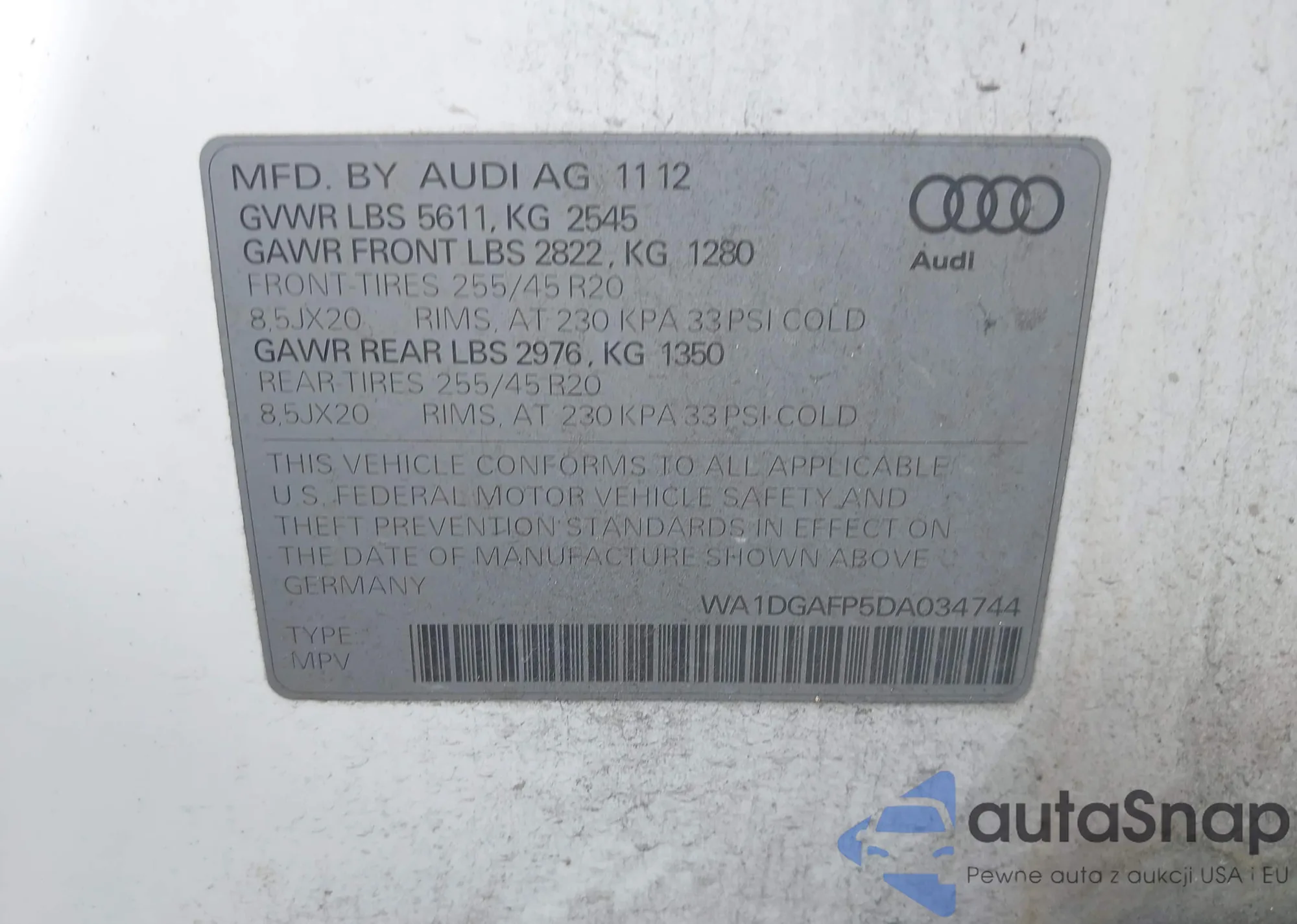 LOT: 43231962 VIN: WVGBV7AX4GW576465
