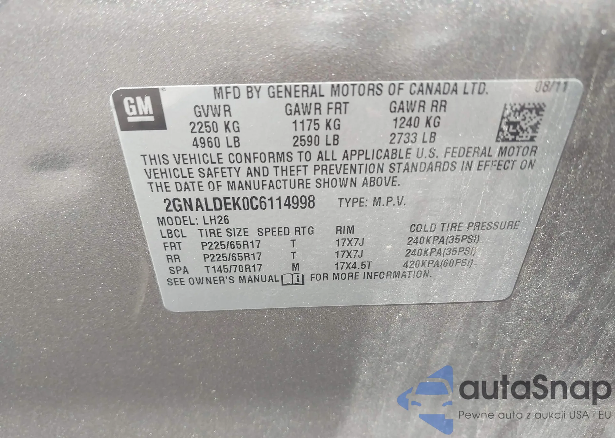 • VIN 2GNALDEK0C6114998