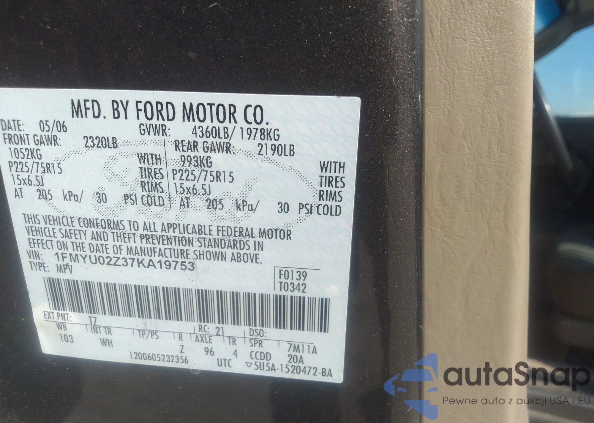 • VIN 1FMYU02Z37KA19753
