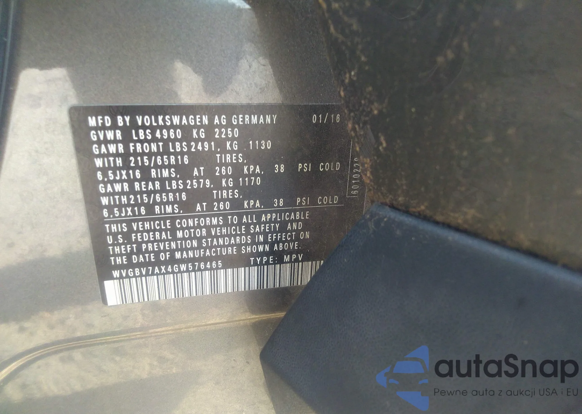 • VIN WVGBV7AX4GW576465