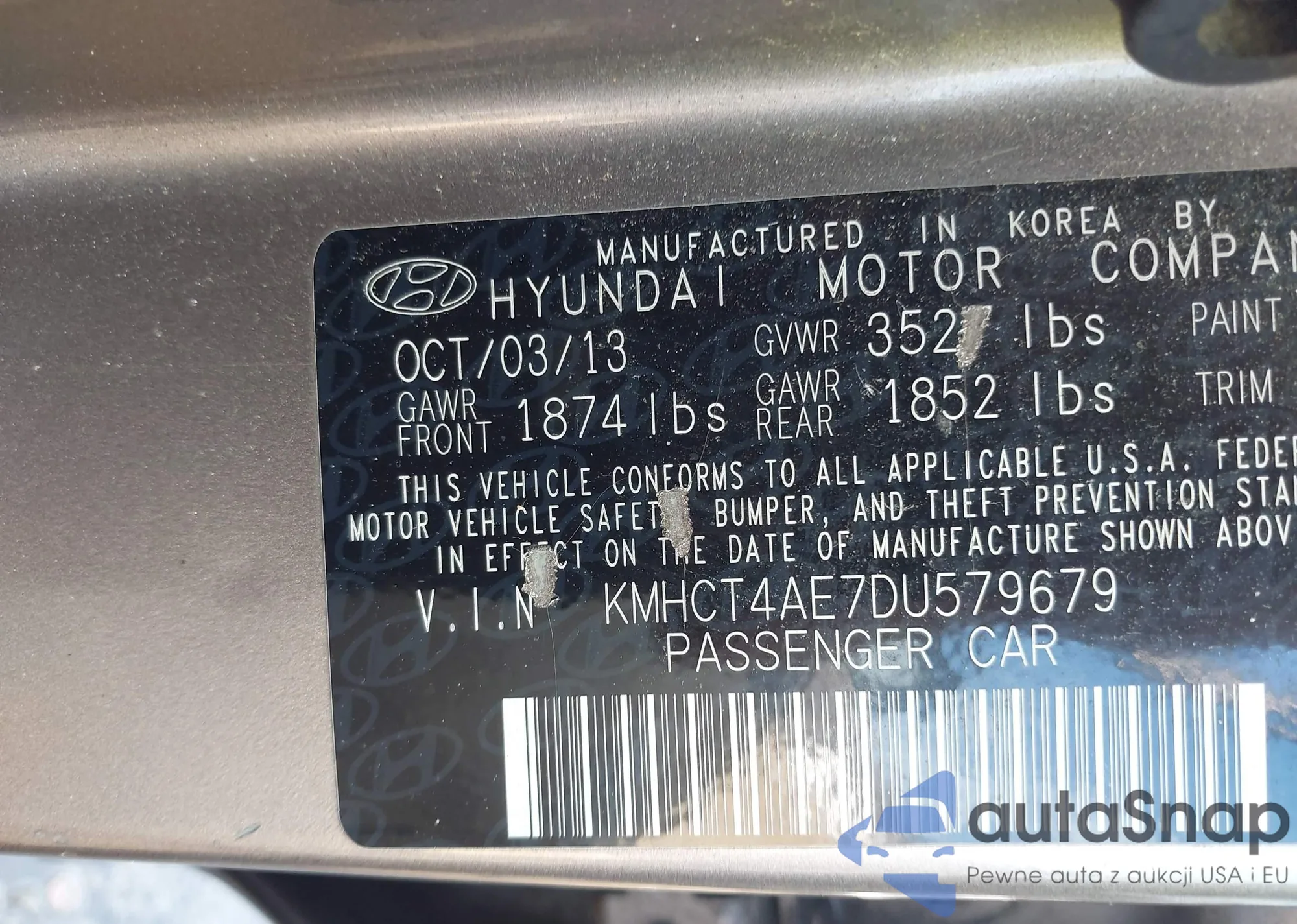 • VIN KMHCT4AE7DU579679