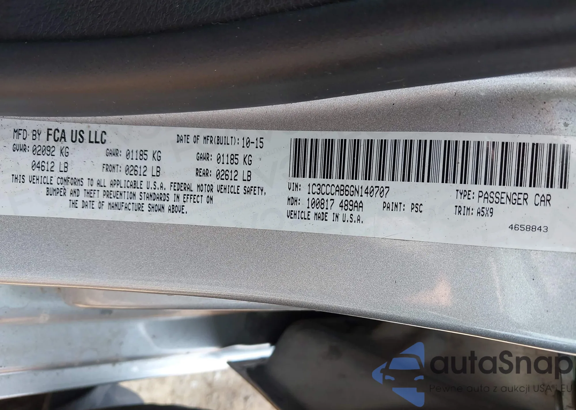 LOT: 42501571 VIN: 1C3CCCAB6GN140707