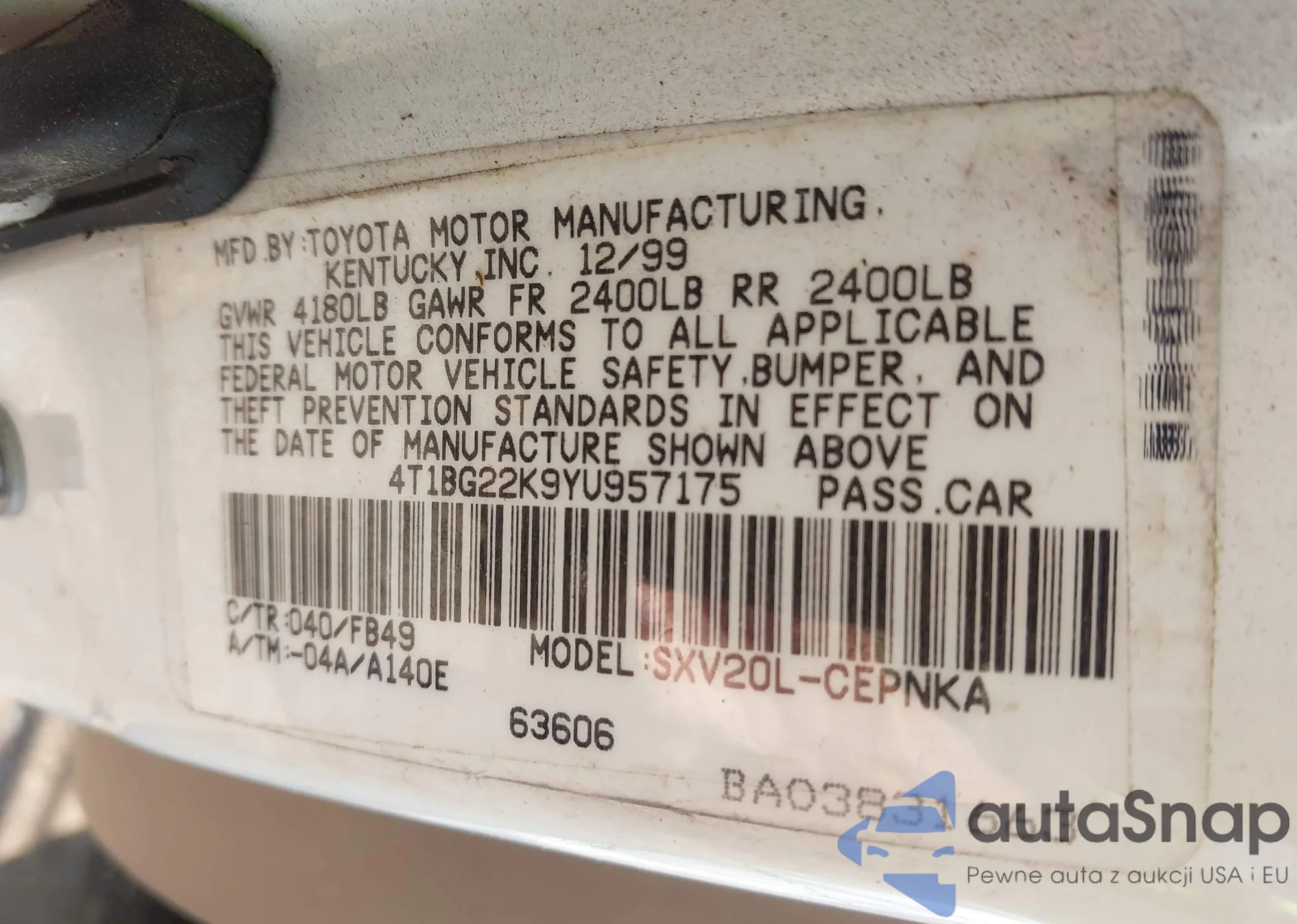 • VIN 4T1BG22K9YU957175