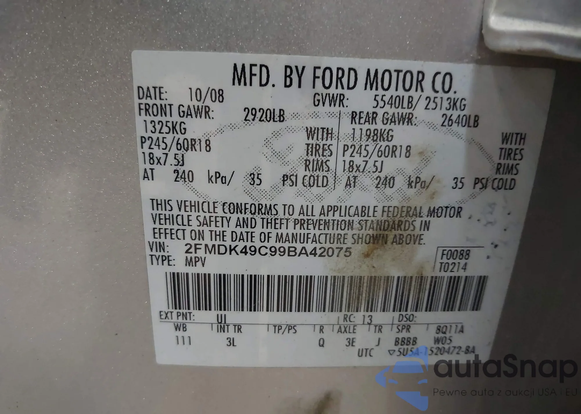 LOT: 43105709 VIN: 1FMCU0F74FUC11592