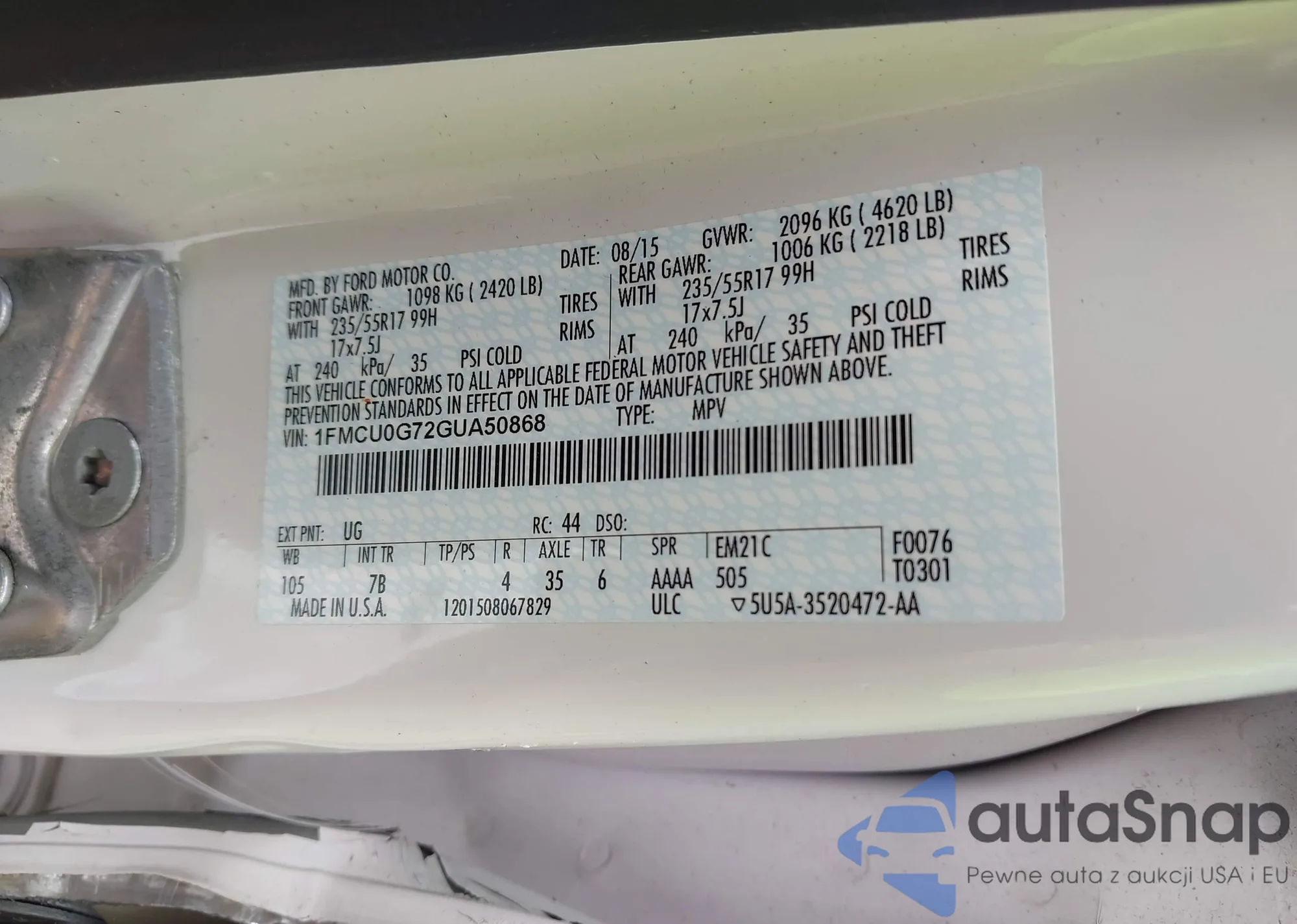 • VIN 1FMCU0G72GUA50868
