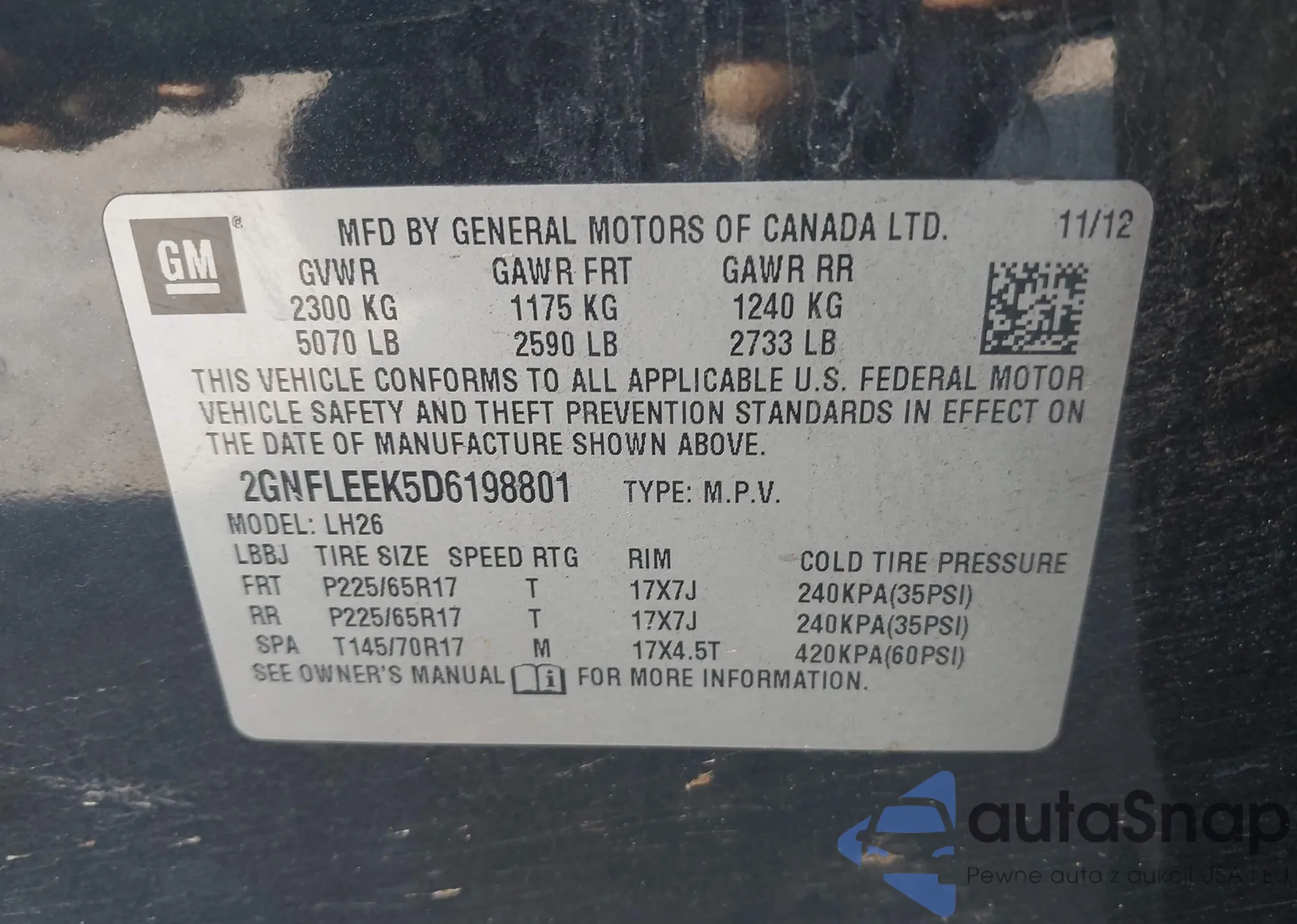 LOT: 43163409 VIN: 3GCPCSE02BG137711