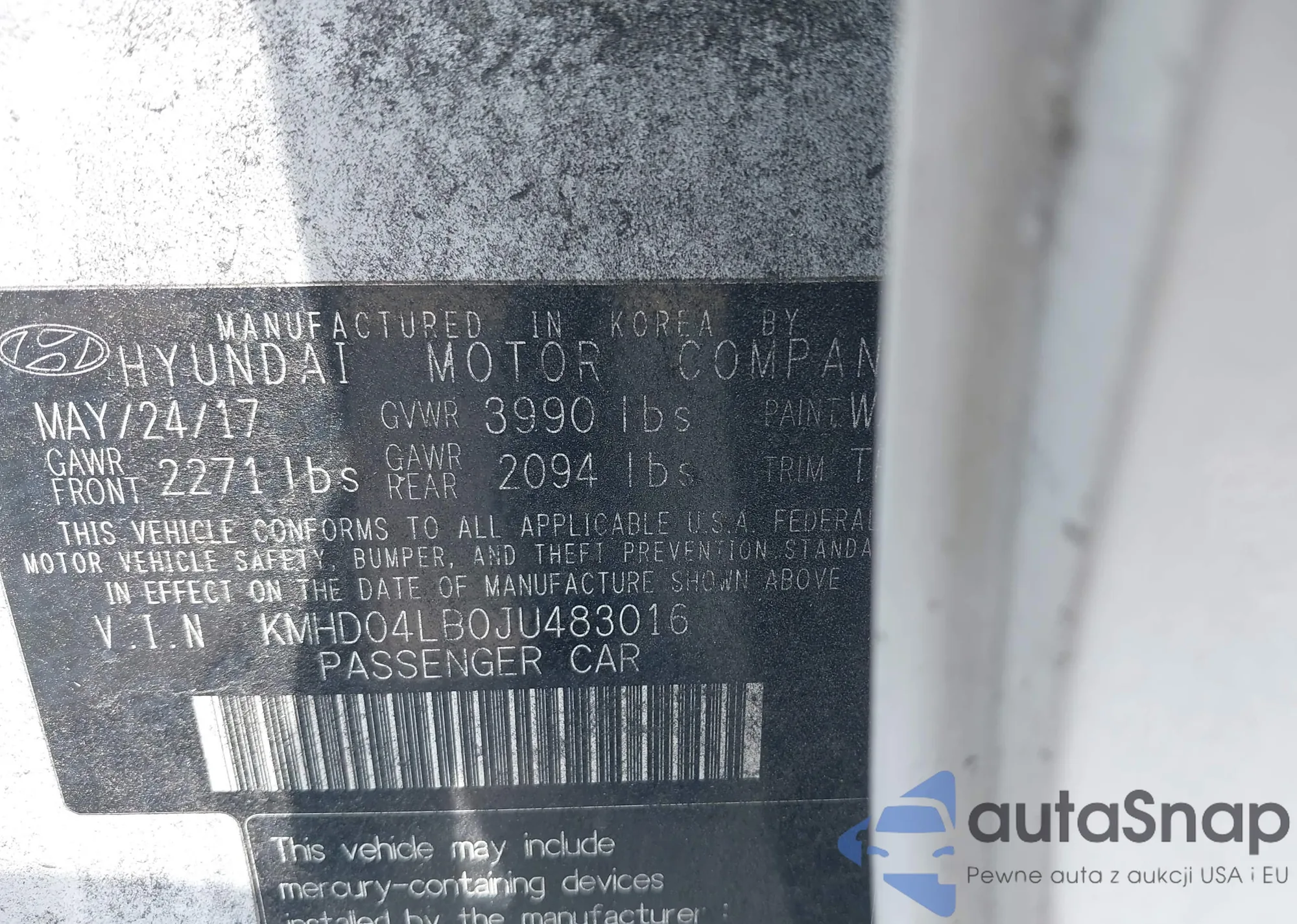LOT: 43175252 VIN: KMHD04LB0JU483016