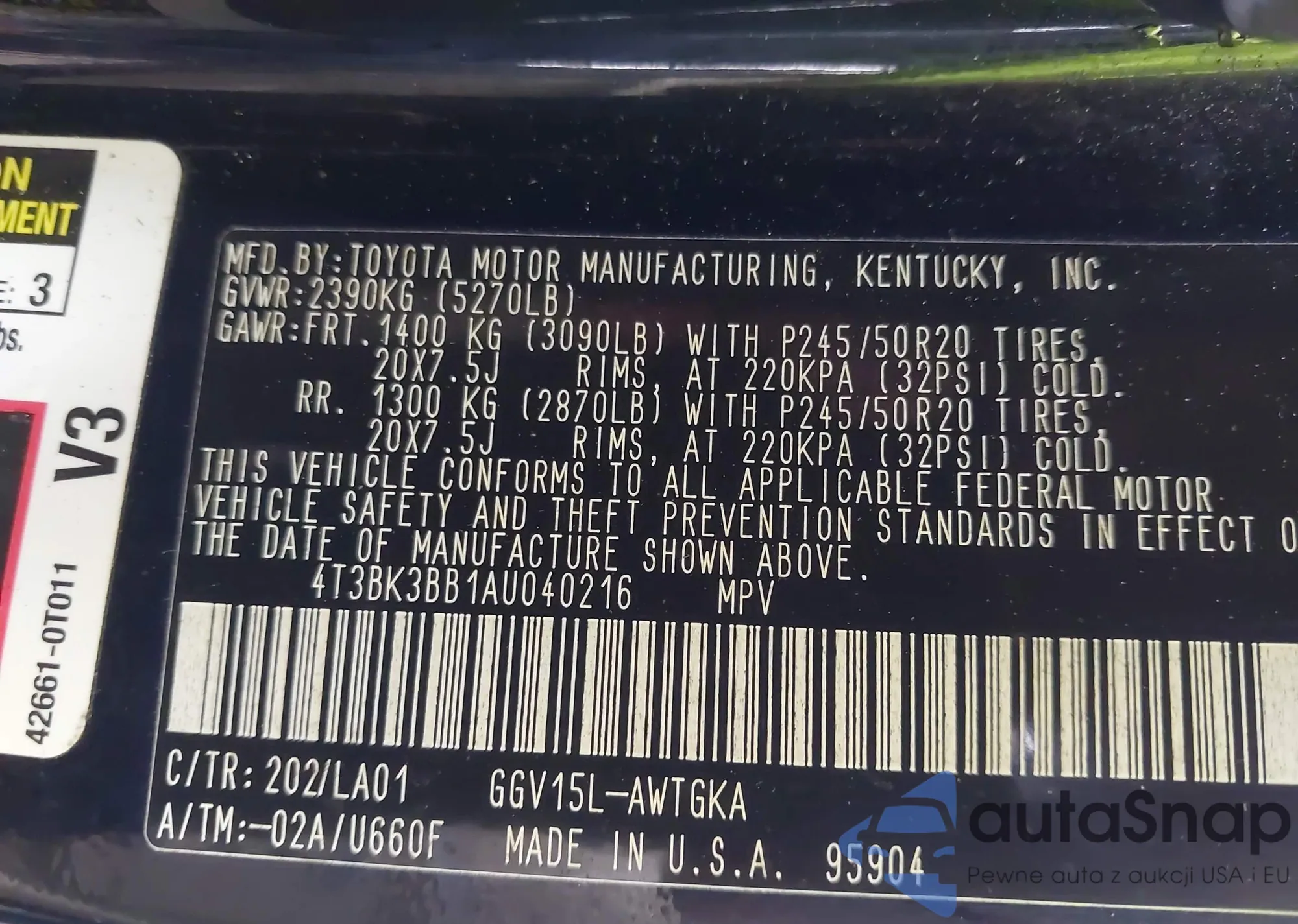 LOT: 43206901 VIN: 2T3W1RFV2MC095002