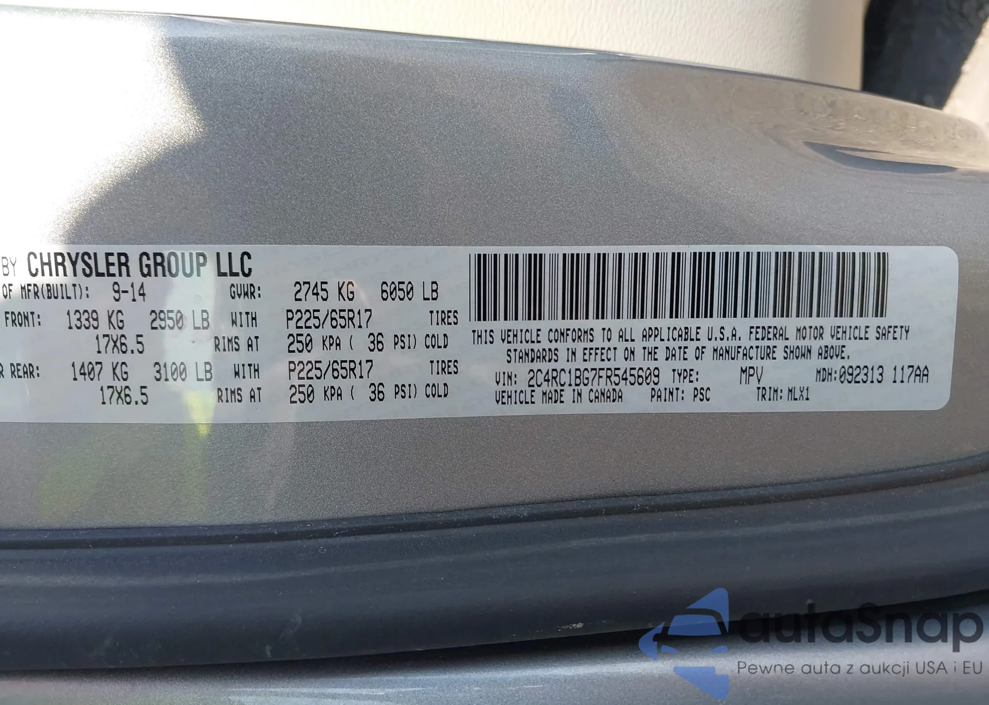 LOT: 43235047 VIN: 2C4RC1BG7FR545609